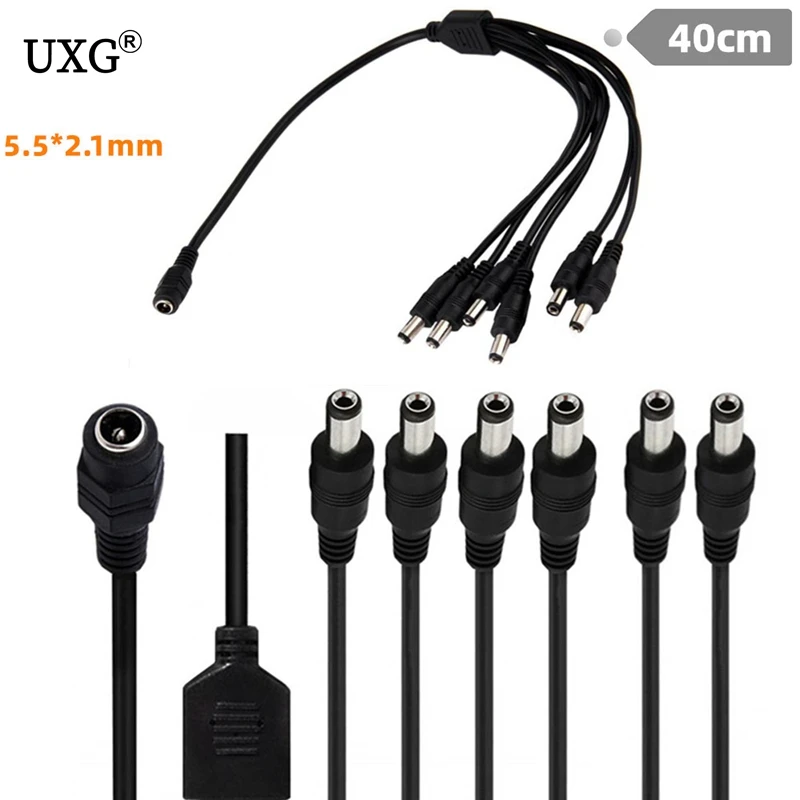 Comprar Fuente de alimentación de 5,5x2,1 MM, 12V CC, 1 hembra a 6 vías macho, Cable de extensión, conector para tira de luz Led de 40cm