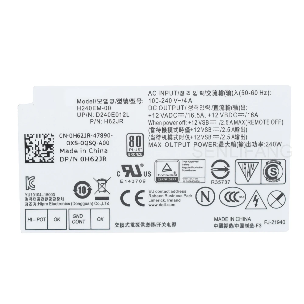 Comprar Fuente de alimentación de 8 pines, 240W, H240EM-00, B240AM-00, B240EM-00, H62JR, para Dell Optiplex 3040, 3046, 3050, 5040, 7040, V3250, nueva