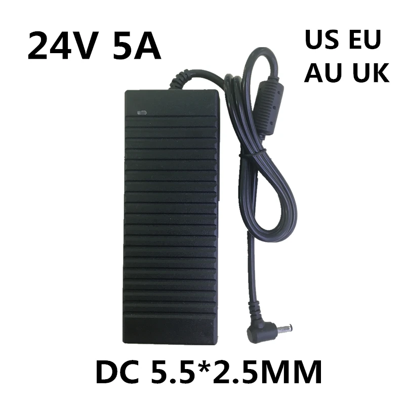 Adaptador de corriente Universal, transformador de fuente de alimentación conmutado.Aplicable a productos de 24V 5A, tiras de luz, fuente de alimentación CC para purificadores de aguaEsta fuente de alimentación es adecuada para una variedad de productos que requieren un voltaje de entrada de 24V CC de hasta 5 a o 5 A. ¡No sobrecarga!Atención selectiva a la potencia, necesita seguir el voltaje de selección, la corriente es igual o superior a la corriente requeridaVoltaje de entrada: 100V-265vVoltaje de salida: CC 24V - 5a.120 vatios de potenciaPolaridad: Dentro del cátodo, fuera del cátodo.DC Plug: 5,5*2,5 MM