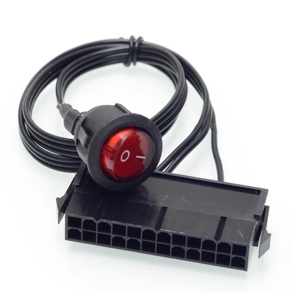 El interruptor cuenta con un conector Molex hembra de 24 pines que se conecta a su PSU para falsificar la conexión de la placa base. Así que simplemente presione el botón y encienda la fuente de alimentación.