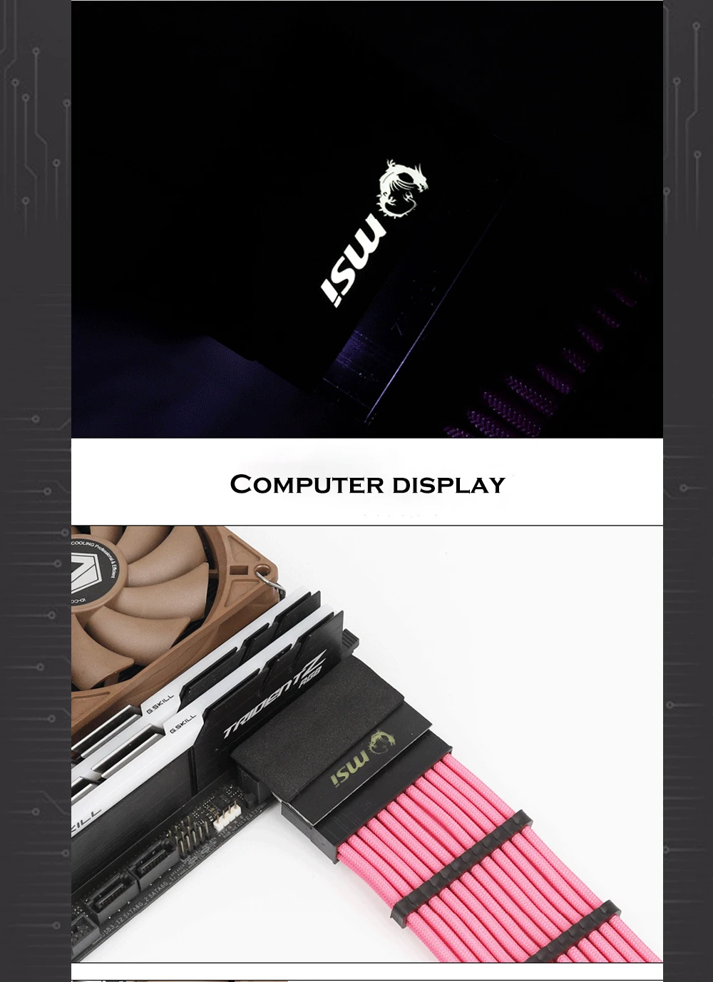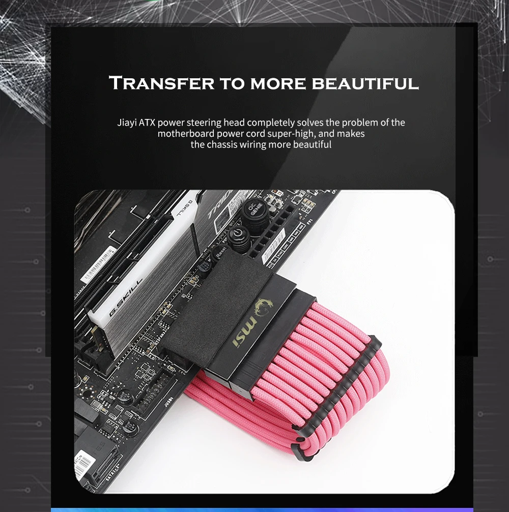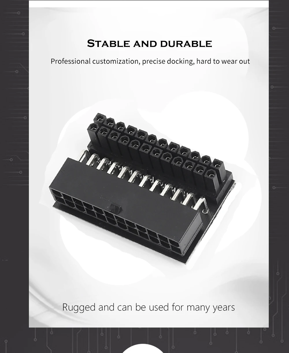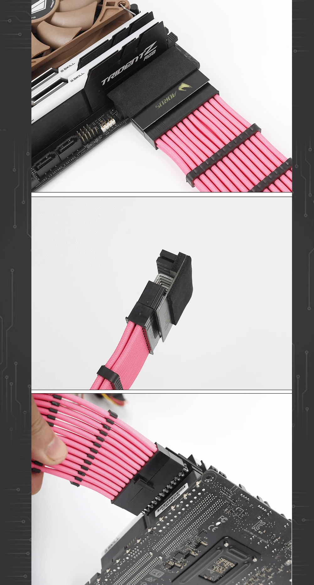 Cable de alimentación PC ATX M/B de 24 Pines, adaptador de conector convertidor de cabezal de dirección de 90 grados, artefacto trasero PSU, ROG/AORUS/MSI