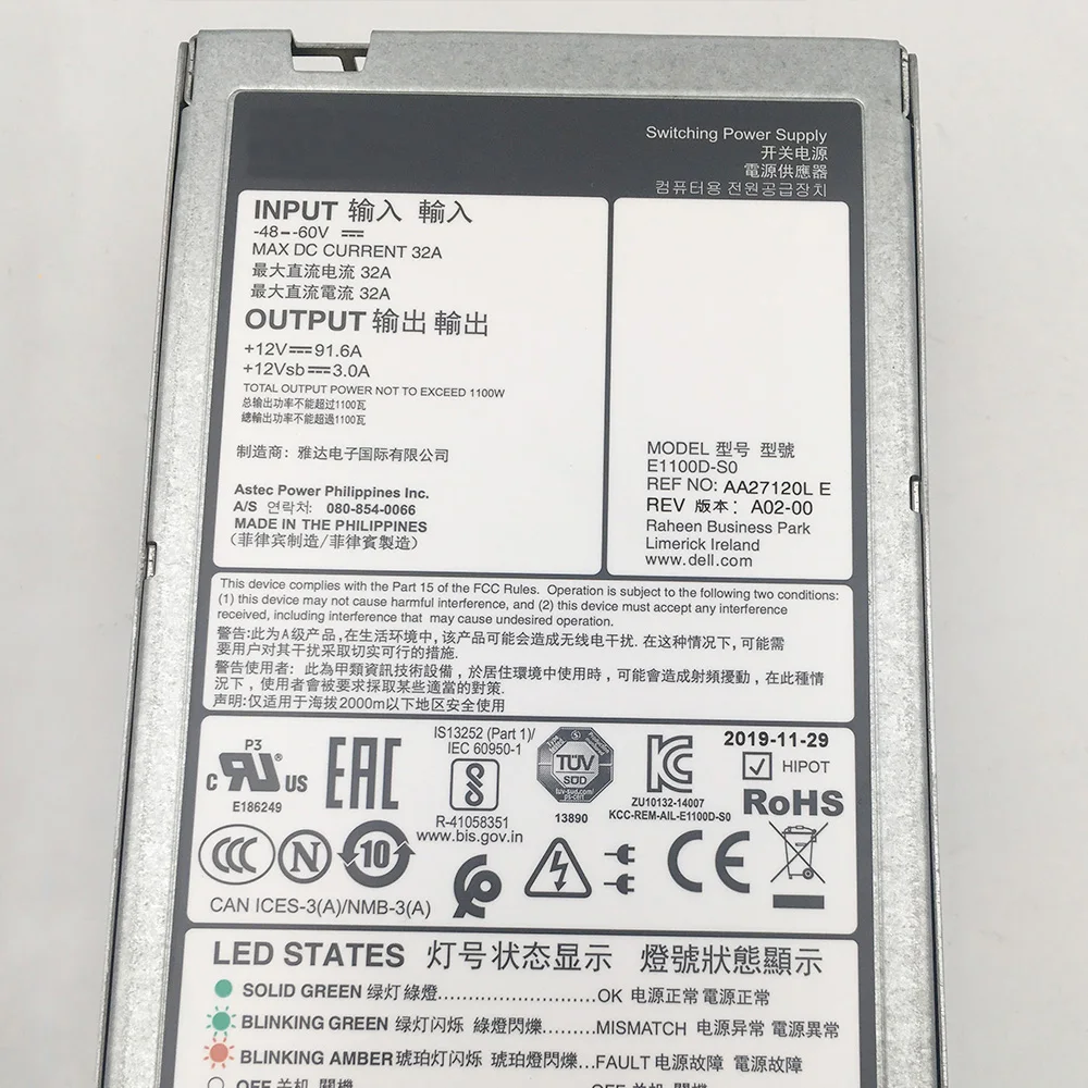 For Server DC Power Supply for DELL R620 R720 R520 R920 R820 1100W E1100D-S0 0Y1MGX 05G4WK 5G4WK Y1MGX