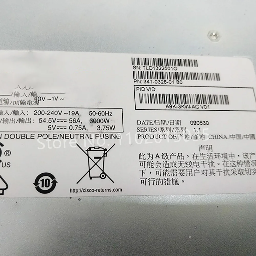 Utilizado en interruptores de la serie ASR9000/9006/9010 341-0326-01 3000W para fuente de alimentación CISCO A9K-3KW-AC