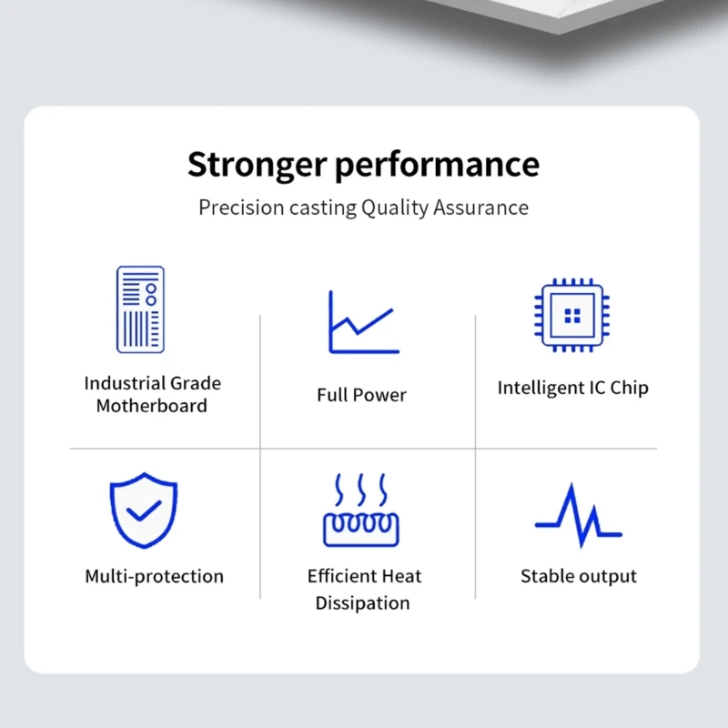 Esta fuente de alimentación cuenta con múltiples mecanismos de protección y refrigeración eficiente, lo que garantiza una salida segura y consistente para sus proyectos de impresión 3D.