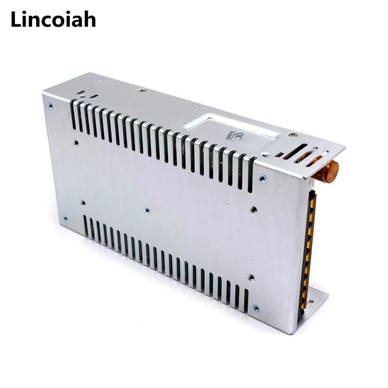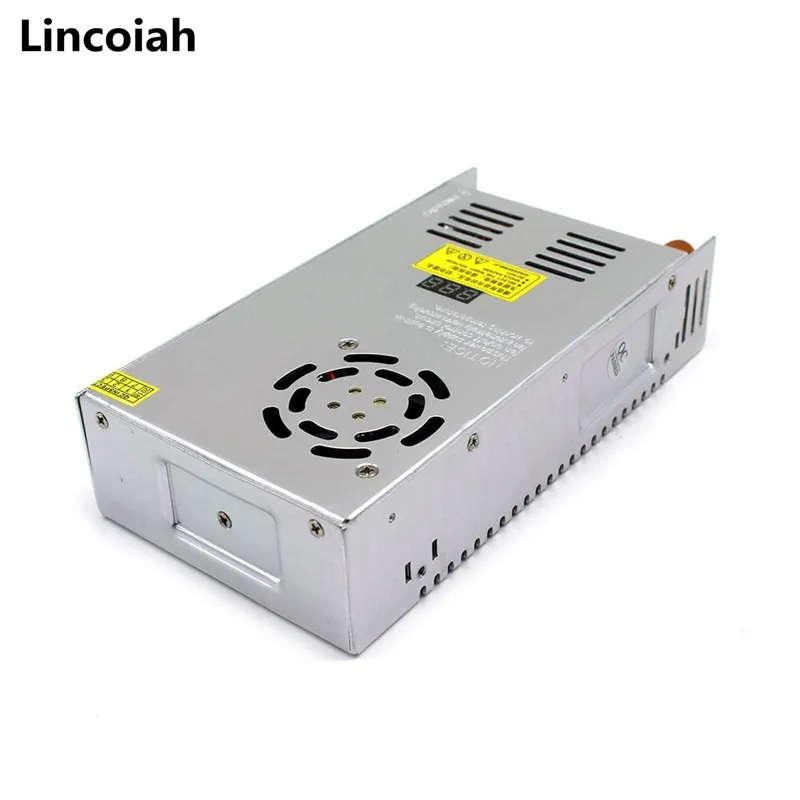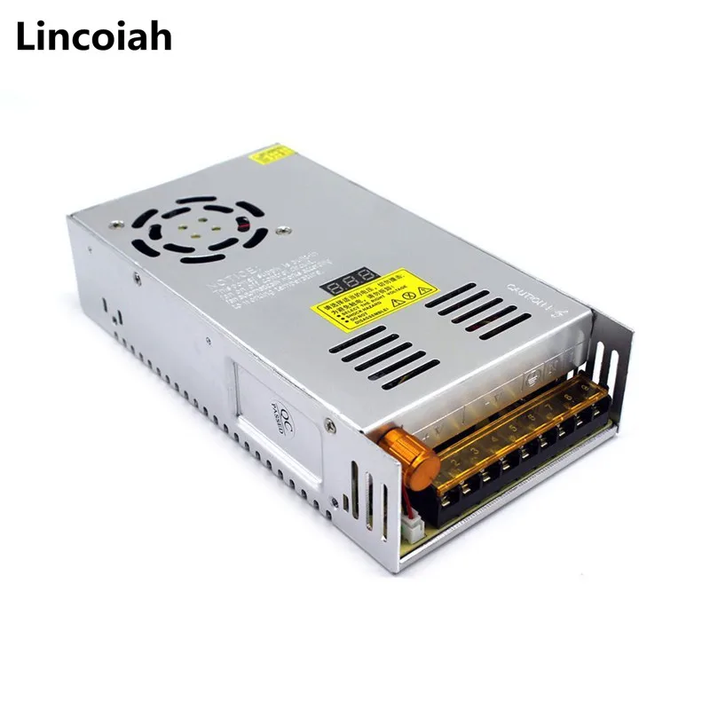 Lincoiah 5V 12V 24V 36V 48V Adjustable Switching Power Supply 60V 80V 120V 160V 220V 480W With Digital Display Power Supply 5V 12V 24VFirst, technical performance indicators1. Output voltage range: 0-- 5V continuously adjustable output current: 60AOutput voltage range: 0-12V continuously adjustable output current: 40AOutput voltage range: 0-24V continuously adjustable output current: 20AOutput voltage range: 0-36V continuously adjustable output current: 15AOutput voltage range: 0-48V continuously adjustable output current: 10AOutput voltage range: 0-60V continuously adjustable output current: 8AOutput voltage range: 0-80V continuously adjustable output current: 6AOutput voltage range: 0-120V continuously adjustable output current: 4AOutput voltage range: 0-220V continuously adjustable output current: 2.2A2, Ripple voltage; no more than 100mV3, The equivalent internal resistance of the regulator: not more than 0.O5Ω4, Voltage adjustment rate:5, with short circuit, overload protection, automatic recovery functionInput voltage: AC110V/220V±15%Rated power: 480WProduct size: 21.5CM (length) * 11.5CM (width) * 5CM (height),The Output current depends on the load ,can't more than the max output currentInstructions for use:Uses: Mainly used in various DC equipment, DC motor stepless speed regulation, LED stepless dimming, chemical electroplating speed regulation, scientific research test, student experiment, etc., and a wide range of uses.Special attention: If using inductive load such as motor or fan, please pay attention to the motor starting current parameter. This parameter must not be higher than the power supply current. Otherwise, the power supply may be damaged. You should select a higher current power supply or provide soft start protection for the motor. The circuit absorbs the inrush current.Power formula) voltage X current=powerTerminal description and wiring methodL, N AC input terminal FG ground mark V+ DC output positive terminalV-DC output negative terminal ADJ adjustable potentiometer Fine-tuning output DC voltage● Full voltage input● Miniaturization● Protection function Short circuit / overload / over voltage● 100% full load aging testInput Voltage & Frequency Range----------110V/220VAC/47~63HzStart surge current ---------------20A@120VAC (cold start)Output adjustment range --------------- ±100% (rated output voltage)Overload protection -------------------105%~200% (rated load), self-recoveryOvervoltage protection -------------------115%~135% (rated output voltage)Short circuit protection ------------------- self-recoveryOutput start time ---------------≤2S@120VAC ≤1.0S@230VACOutput hold time ---------------≥10mS@120VAC, ≥20mS@230VACInsulation strength ------------------- Input - Output: AC1500V, 1minInput - housing: AC1500V, 1minOutput - Case: DC500V, 1minWorking environment ------------------ -10 ° C ~ 50 ° C; 20% ~ 90% RH (no condensation)