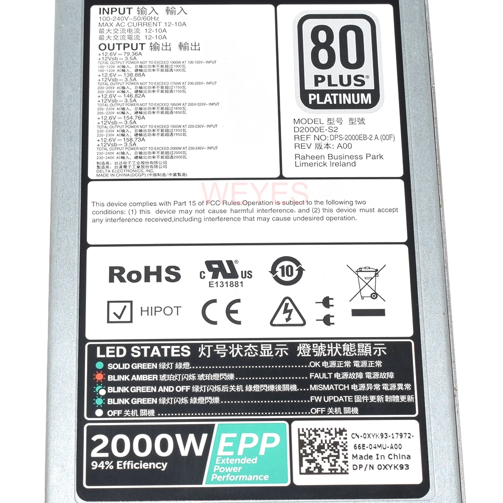 Fuente de alimentación conmutada para DELL R840, R940, R740XD, T640, servidor EPP, fuente de alimentación conmutada, D2000E-S2 A, bien probada, 2000W, PSU DPS-2000EB-2, 0XYK93, XYK93