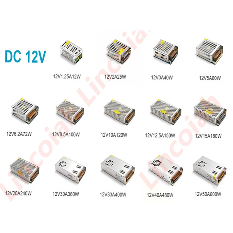 Comprar Fuente de alimentación conmutada para luz LED, cargador de controlador con interruptor, cámara CCTV, AC 100-240V DC 12V 60W 120W 150W 200W 250W 360W