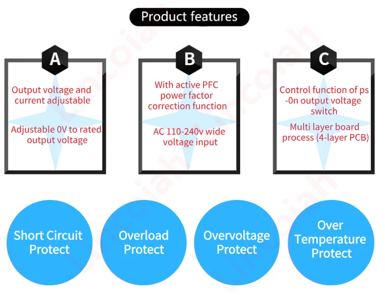 Comprar Fuente de alimentación conmutada PFC para Led, 0-24V, 30V, 36V, 45V, 48V, 60V, 72V, 110V, 150V, 1000W, 1200 V, 110V, CA/CC smps