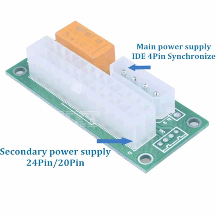 Comprar Fuente de alimentación Dual PSU ATX 24Pin a Molex 4Pin, tarjeta de Cable extensor de arranque de sincronización para máquina de minería BTC, 10 piezas