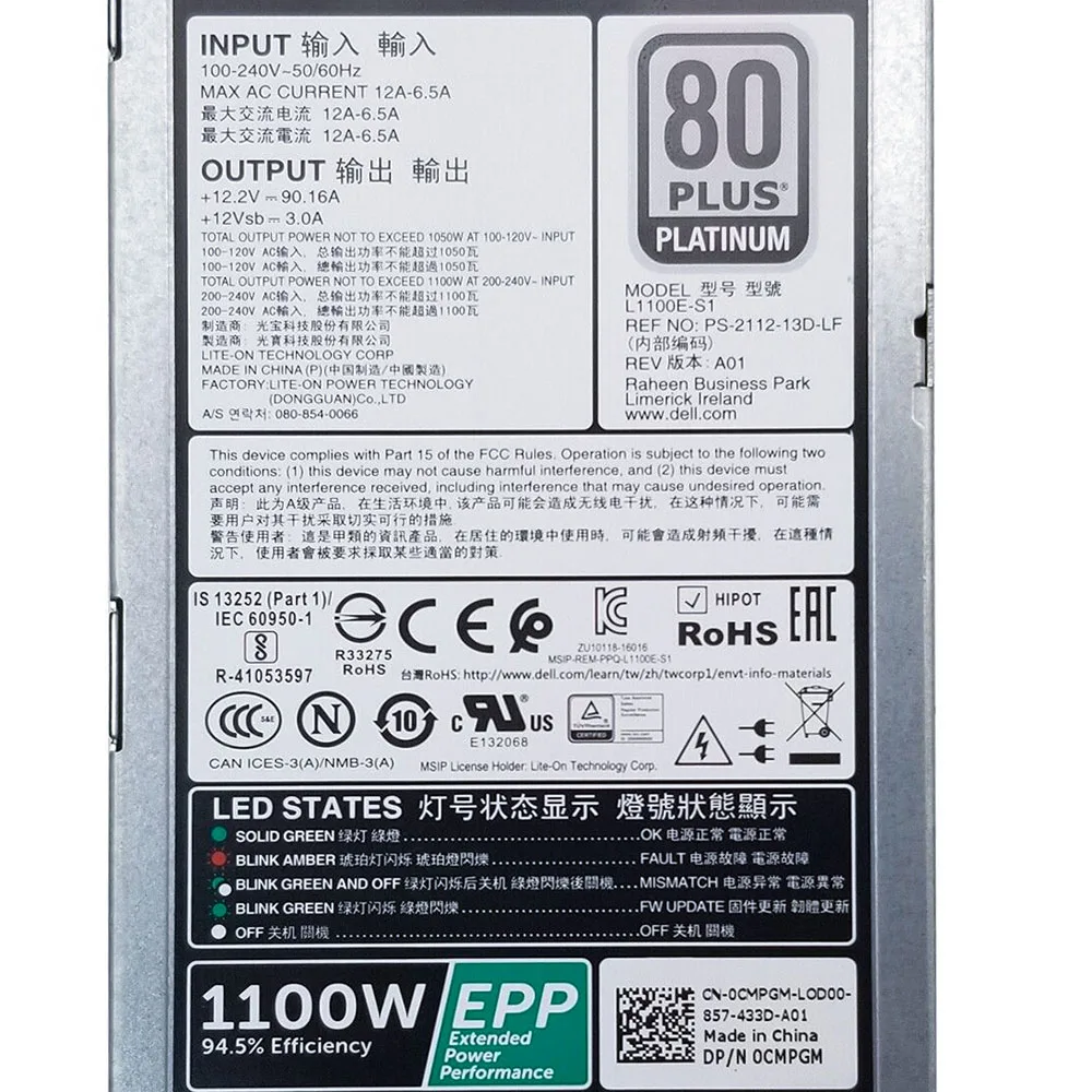 Comprar Fuente de alimentación EPP Original, 1100W, 0cmpgm, para PowerEdge R630, R730, T430, T630, 1100W, EPP 80 Plus, L1100E-S1 de platino, CMPGM