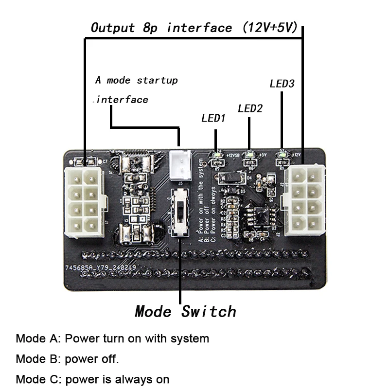 3. Hay tres modos de fuente de alimentación conmutables, el modo A admite el arranque síncrono con la fuente de alimentación host, el modo B apaga la alimentación, Y la fuente de alimentación en modo C siempre está encendida para suministrar energía al disco duro directamente.