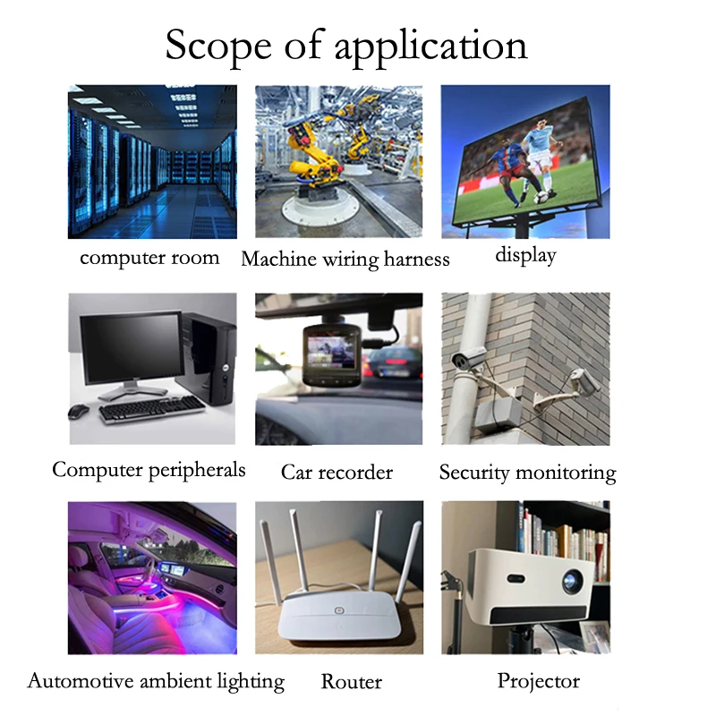 El cableado de alimentación tiene una apariencia simple y profesional.Más conveniente para instalar cámaras y tiras de luz LED.El paquete incluye (opcional):1 * cable