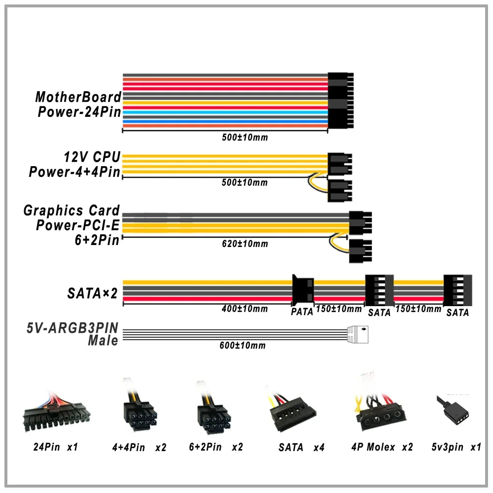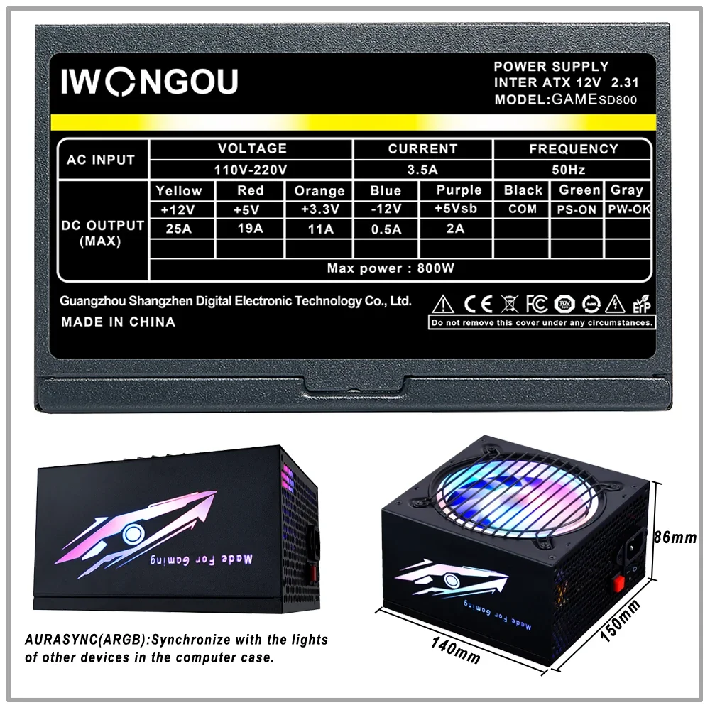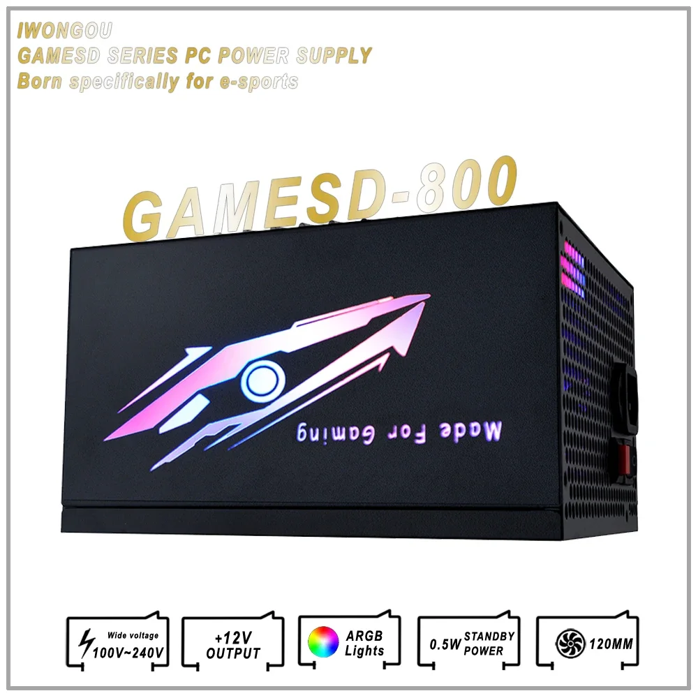 Fuente de alimentación de máx. 800 vatios para ordenador, fuente de alimentación de 600 vatios, 24 Pines, 12 voltios, 24 Pines, Pico Psu GAMESD800, IWONGOU