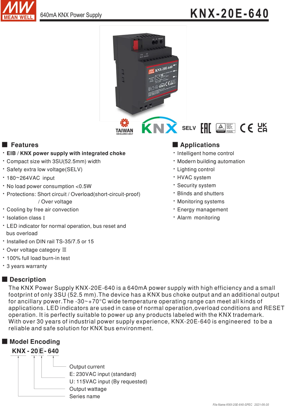 Safety extra low voltage(SELV)180~264VAC input