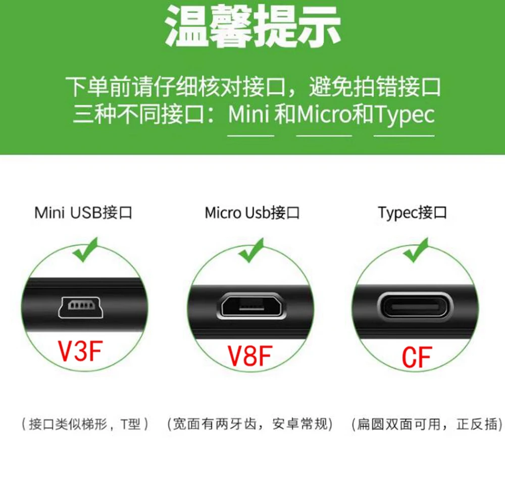 Fuente de alimentación Micro/Min para coche, 0,2 M, 03M, 0,5 M, 1/2 pulgadas, cable de datos de doble cabezal Android tipo c, extensión de carga de 1 a 2