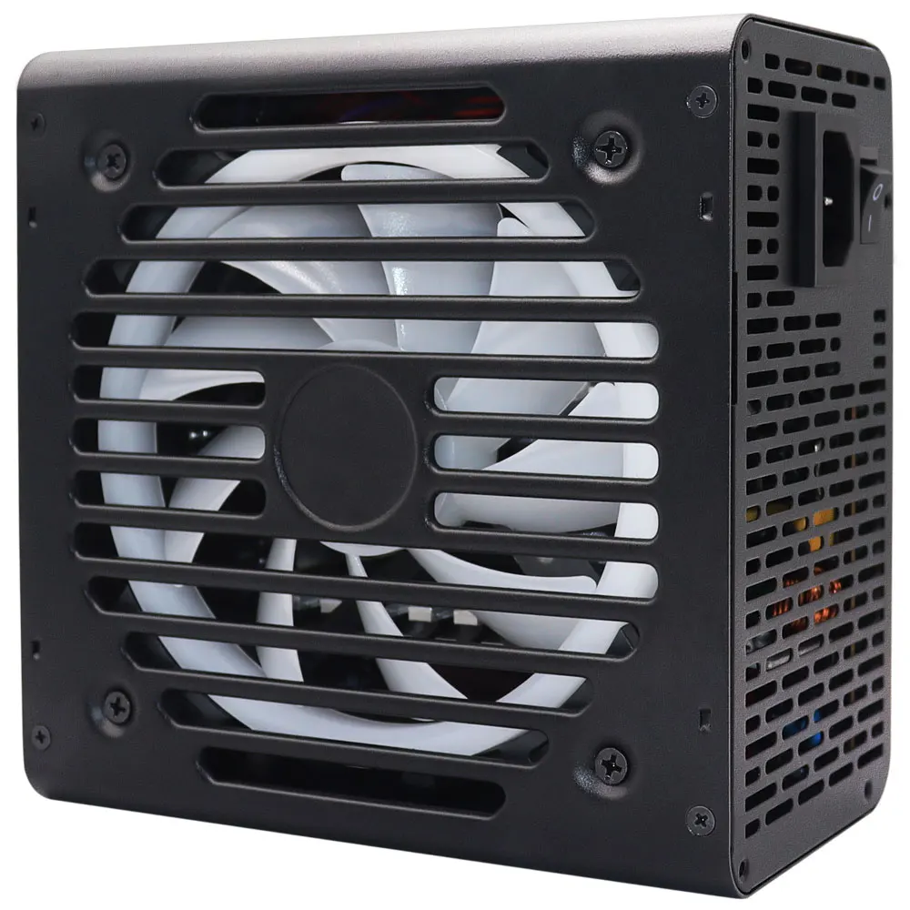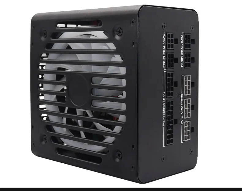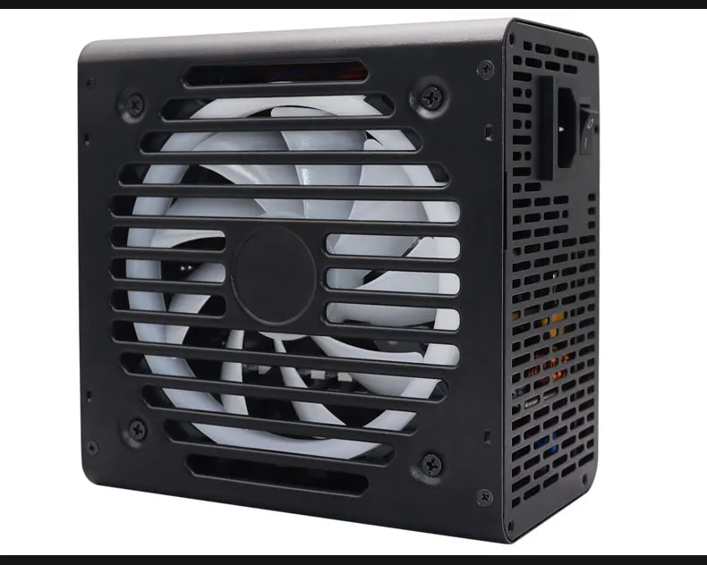 Ventilador FDB de bajo ruido de 120mm con luz ARGB: la fuente de alimentación puede seguir funcionando silenciosamente, mejorar la circulación de aire del chasis y maximizar el efecto de enfriamiento y el efecto de protección contra el polvo. Funcionamiento silencioso y fiabilidad a largo plazo, con múltiples modos de luz ARGB.