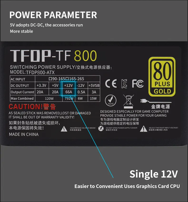 Fuente de alimentación totalmente modular: la tasa de conversión de carga de energía modular de 800 vatios es más alta que la fuente de alimentación ordinaria, que ahorra más energía, hermoso en cableado, más ahorro de espacio, y proporciona más comodidad para los reproductores DIY. Para los usuarios que desean una tarjeta gráfica múltiple y un funcionamiento de disco duro múltiple, la fuente de alimentación modular de 800W será más conveniente de expandir.
