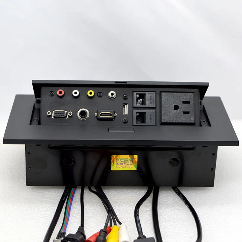 Comprar Fuente de alimentación multifuncional GFK518, enchufe de escritorio con AV VGA, conector de 3,5mm, caja de conexión libre estándar de EE. UU., oficina y Conferencia