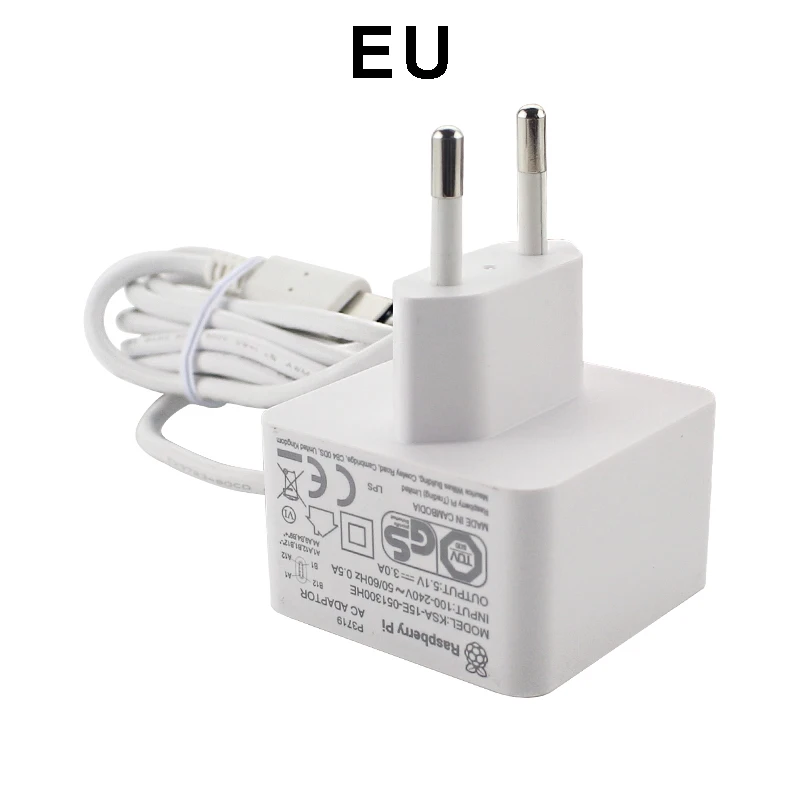 Esto es 5,1 V 3 A. , Enchufe de alimentación 18 AWG de 1,5 m para Raspberry Pi 4 Modelo B, proporcionamos tres enchufes de alimentación para elegir en el Reino Unido, EE. UU., UE.