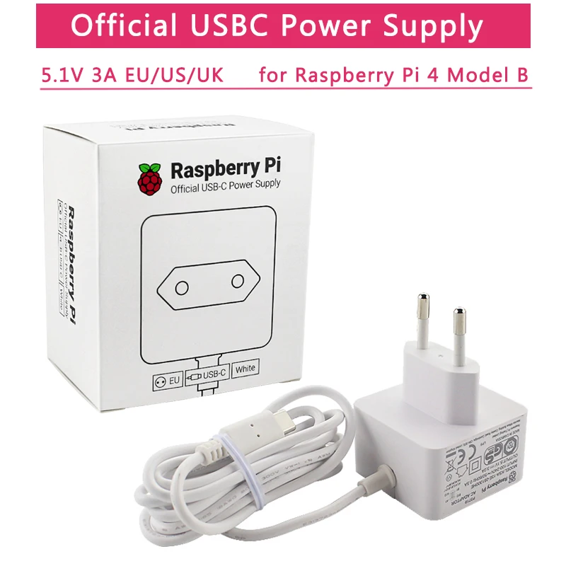 Fuente de alimentación oficial Raspberry Pi 4 Cargador de 5V 3A Enchufe UE Reino Unido EE. UU. Adaptador de corriente USB-C recomendado para Raspberry Pi 4 Modelo B