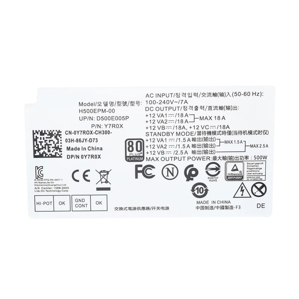 Nuevo para Optiplex 5080MT 7080MT 7070MT 7060MT 3050MT 3650 3670 3671 5090 3260 3681 fuente de alimentación de dos y dos años de duración· Modelo aplicable:Para Optiplex 5080MT 7080MT 7070MT 7060MT 3050MT 3650 3670 3671 5090 3260 3681 · Modelo:2. 1 Y7R0X D500E005P, 2. 1., 2., 2., 2., 2. 1, 2. · Especificaciones: Potencia:MAX 500W Voltaje de entrada100-240V ~,7A Voltaje de salida:12V Interfaz:4 pines + 4 pines + 6 pines + 8 pines · El paquete incluye:1 Fuente de alimentación de 1 piezas · Nota: 1. Puede haber un pequeño error de tamaño para la medición manual. 2. Enviamos el pedido en 1-3 días hábiles con el número de seguimiento proporcionado cuando se realiza el pedido. 3. Por favor, rellene la dirección correcta y no rellene la dirección POBOX, para evitar la devolución de las mercancías debido a la incapacidad del proveedor de logística para entregar las mercancías.