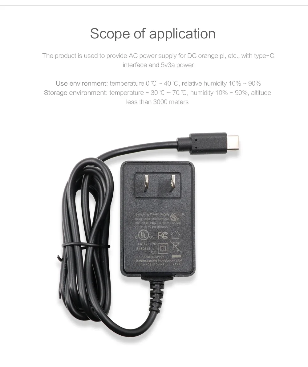 Comprar Fuente de alimentación Orange Pi 5V3A, EE. UU. Tipo C, para OPi (3 LTS/ Zero 2W/ Zero3/CM4/3B/Zero2/R1 Plus LTS)