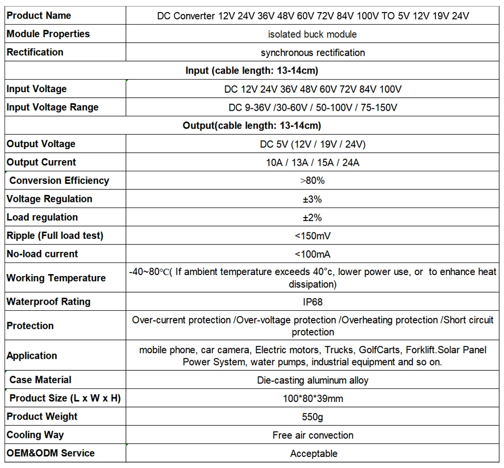 DC-DC isolated voltage regulator power supply 84V 72V 60V 48V 36V 24V 12V to 5V 12V 19V 24Vconverter step-down module 9-150V to 10A-24A