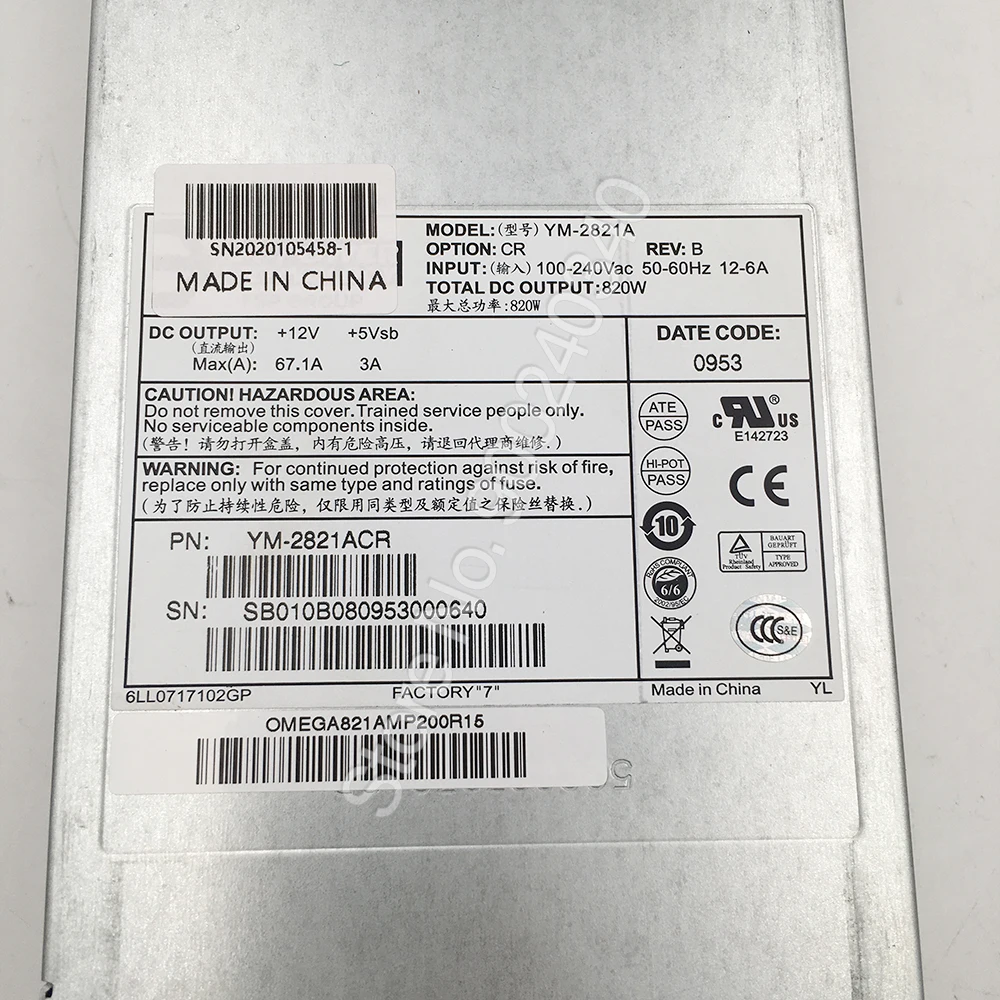 Fuente de alimentación del servidor YM-2821A 820W MAX Totalmente probada