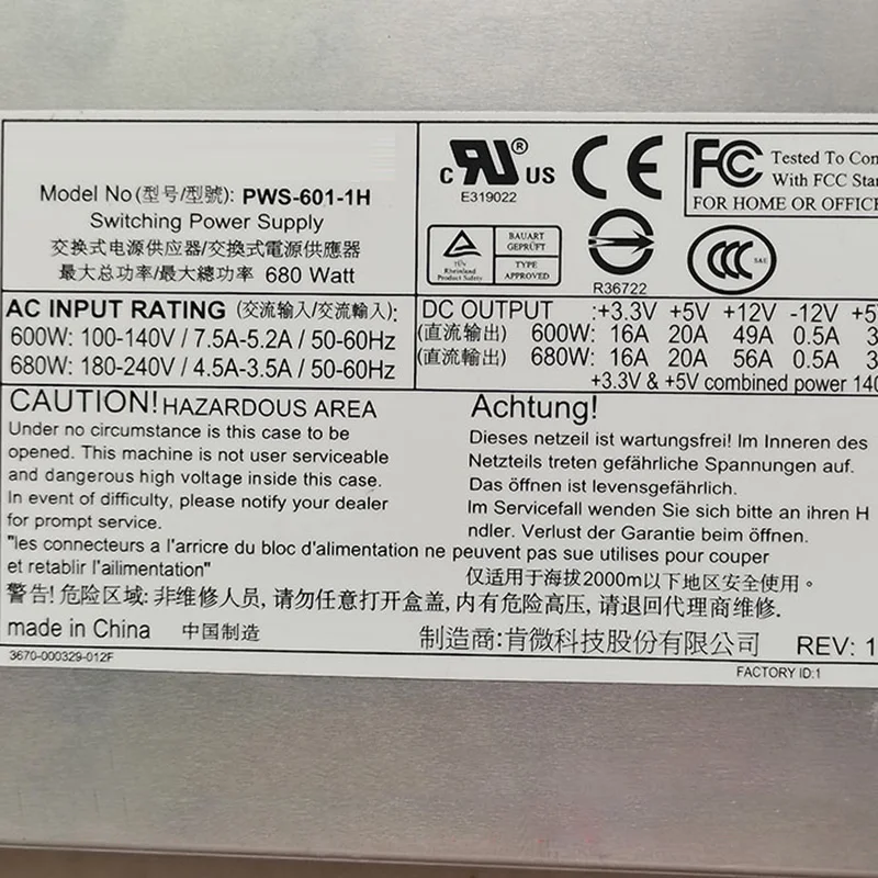 PWS-601-1H 680W Original Supermicro 1U servidor energía Firewall fuente de alimentación silenciosa 100% probado envío rápido