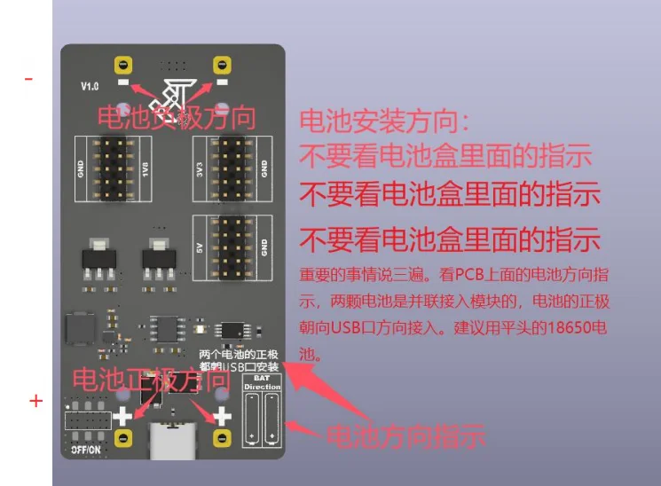 Preste atención a distinguir los polos positivo y negativo.Conectándolos al revés quemará el módulo (hay pantallas de seda de polo positivo y negativo en el tablero, siga estrictamente las instrucciones de la pantalla de seda para instalar la batería);
