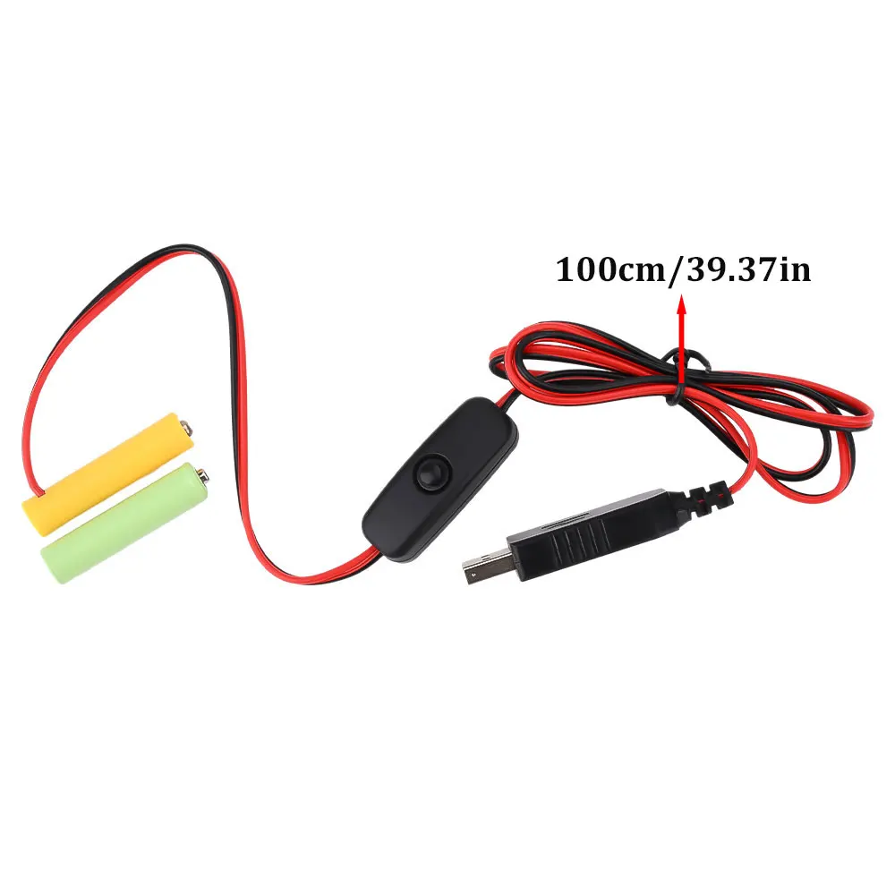 1 x USB Power Supply Replace 3V/4.5V/6V AA/AAA Battery for Clock Toys Lights LED with Switch