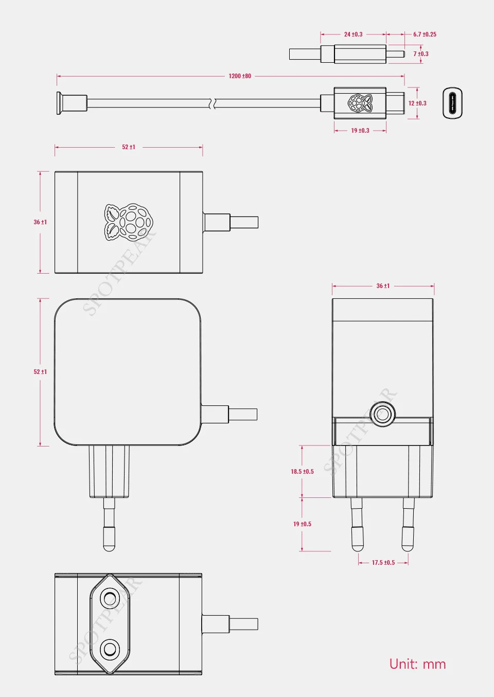 [] Especificaciones: Cable de 1,2 m de longitud, 18AWG, conector de salida USB tipo C.