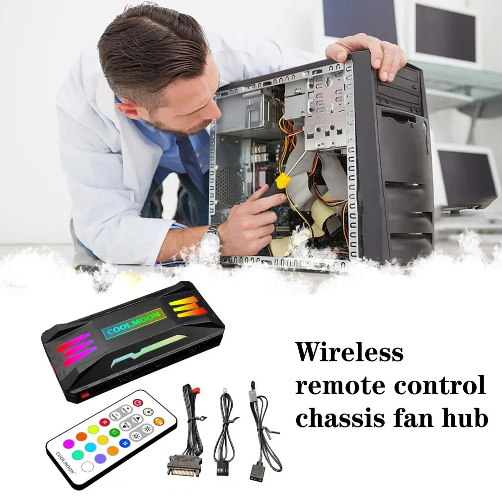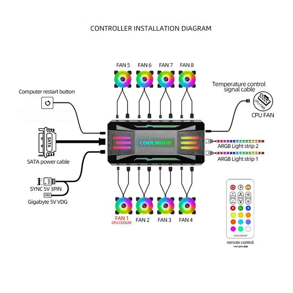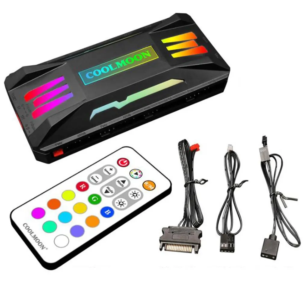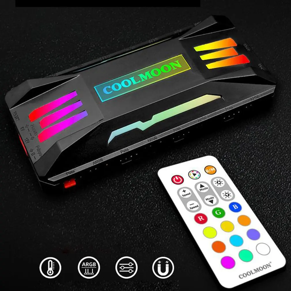 El controlador tiene una carcasa emisora de luz, admite control de temperatura y regulación de velocidad, sincronización de placa base de 5V y control remoto.