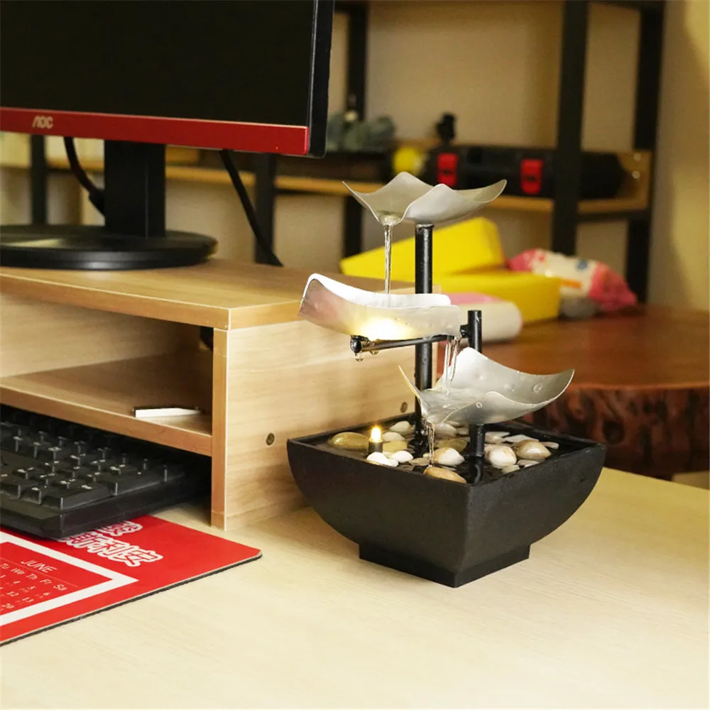 Fuente de escritorio, bomba automática de relajación de 3 capas con interruptor de alimentación, fregadero ultraprofundo para decoración interior de hogar y oficina