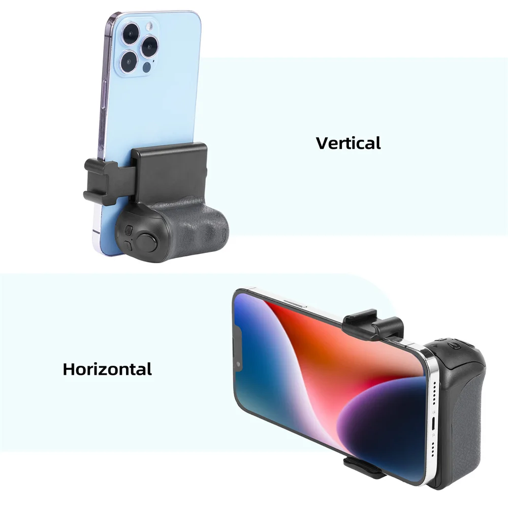 El agarre de la cámara del teléfono inteligente presenta un diseño ergonómico cómodo y un mango de goma, lo que permite un funcionamiento fácil y seguro de su teléfono inteligente con una sola mano.