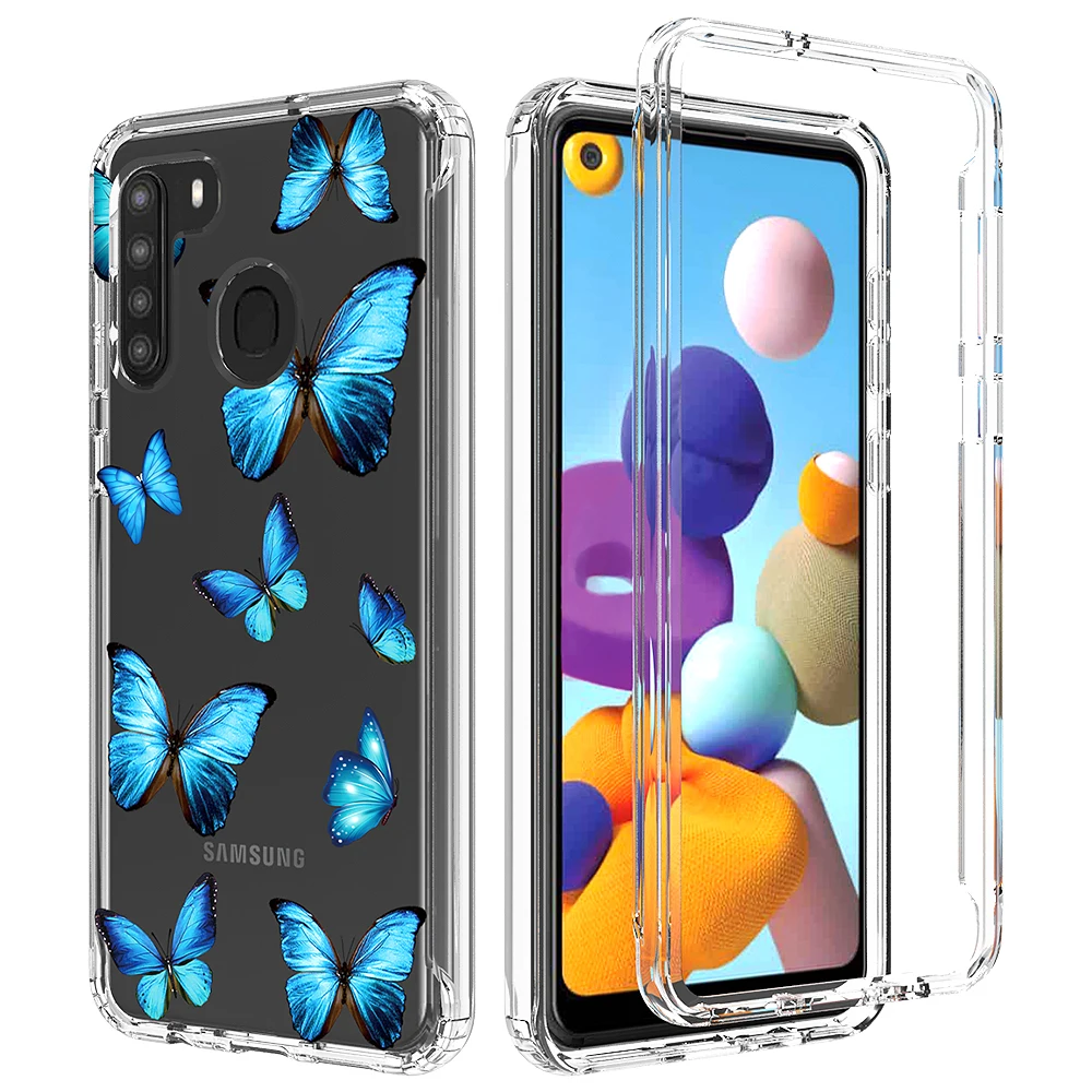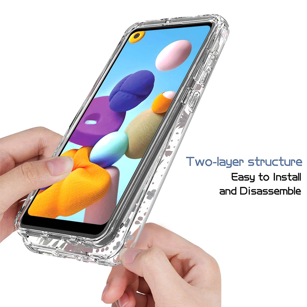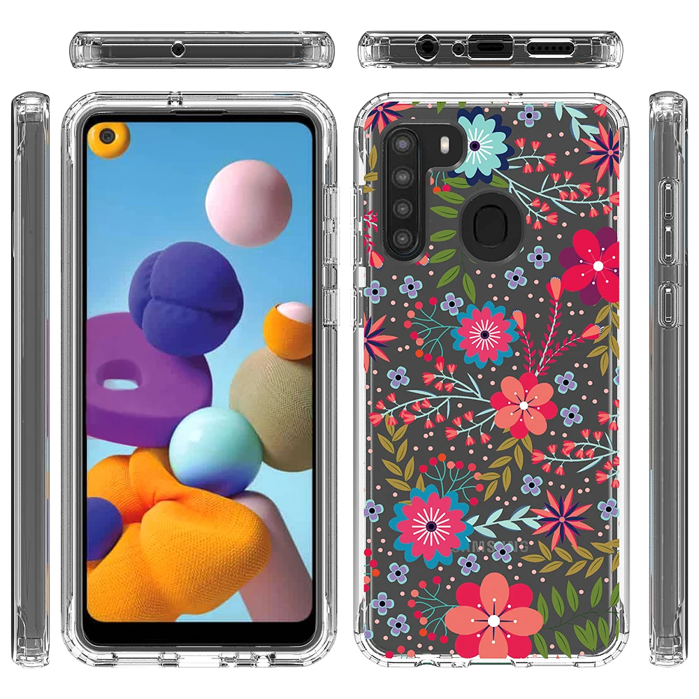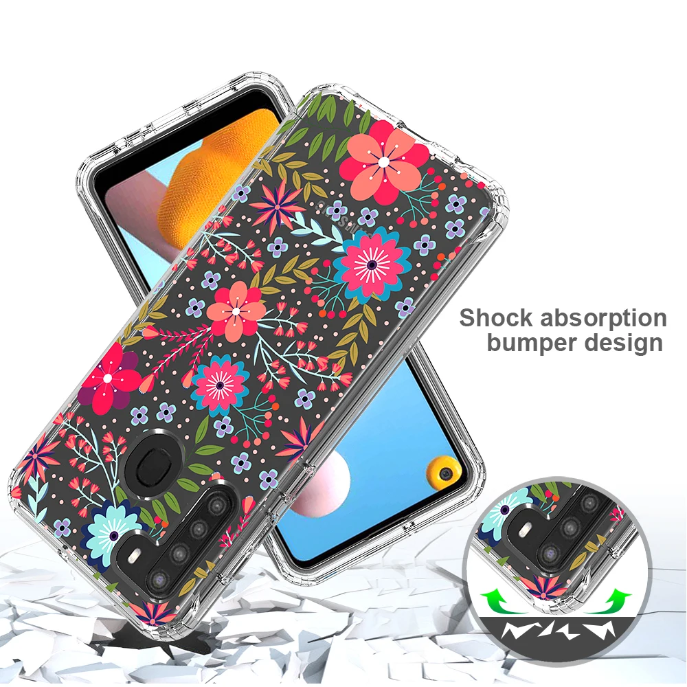 Funda de flores pintadas transparentes 2 en 1 para Samsung Galaxy A21, PC de cristal duro + TPU suave 360, funda protectora completa para teléfono