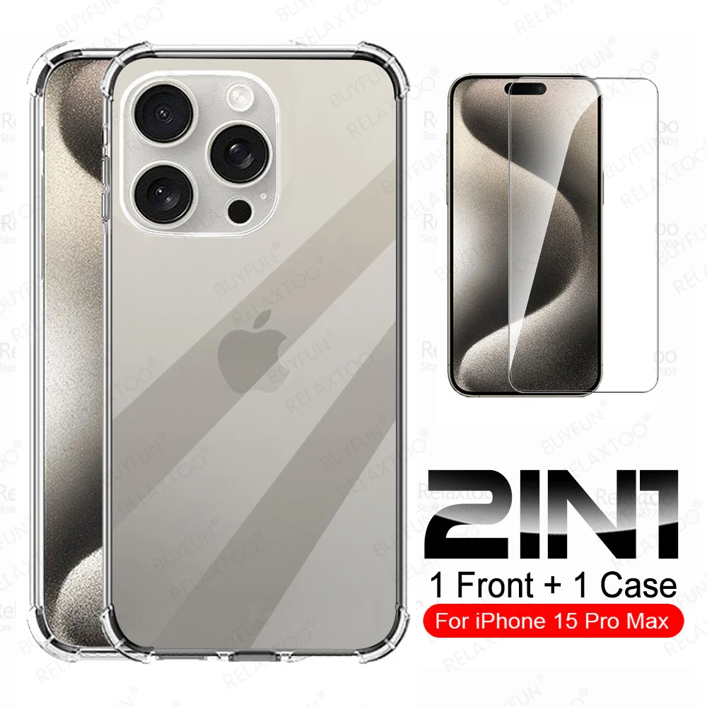 Comprar Funda 2 en 1 para iPhone 15 Pro Max, Protector de pantalla de vidrio templado, Ultra transparente, 15 Plus, 15 Pro, 2023