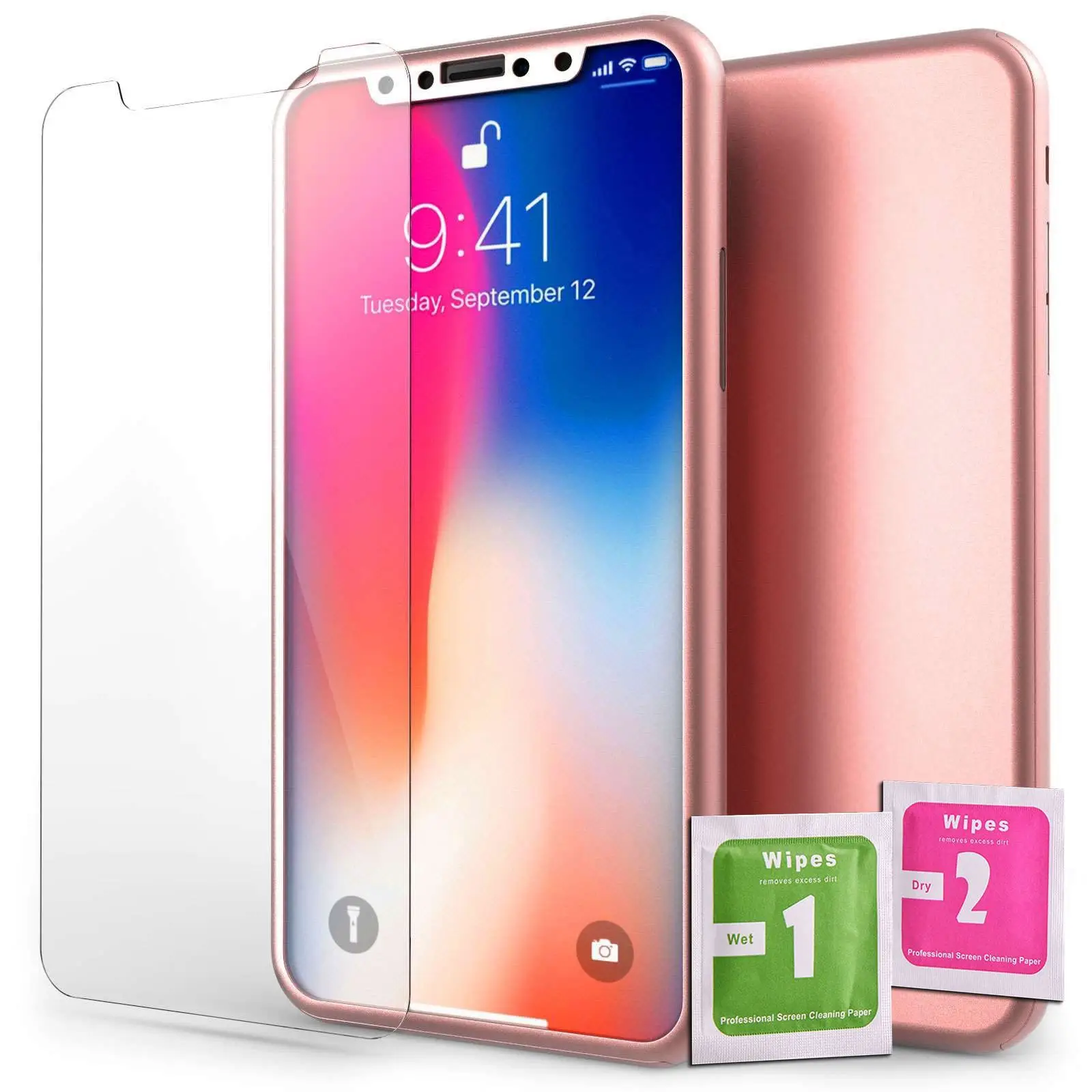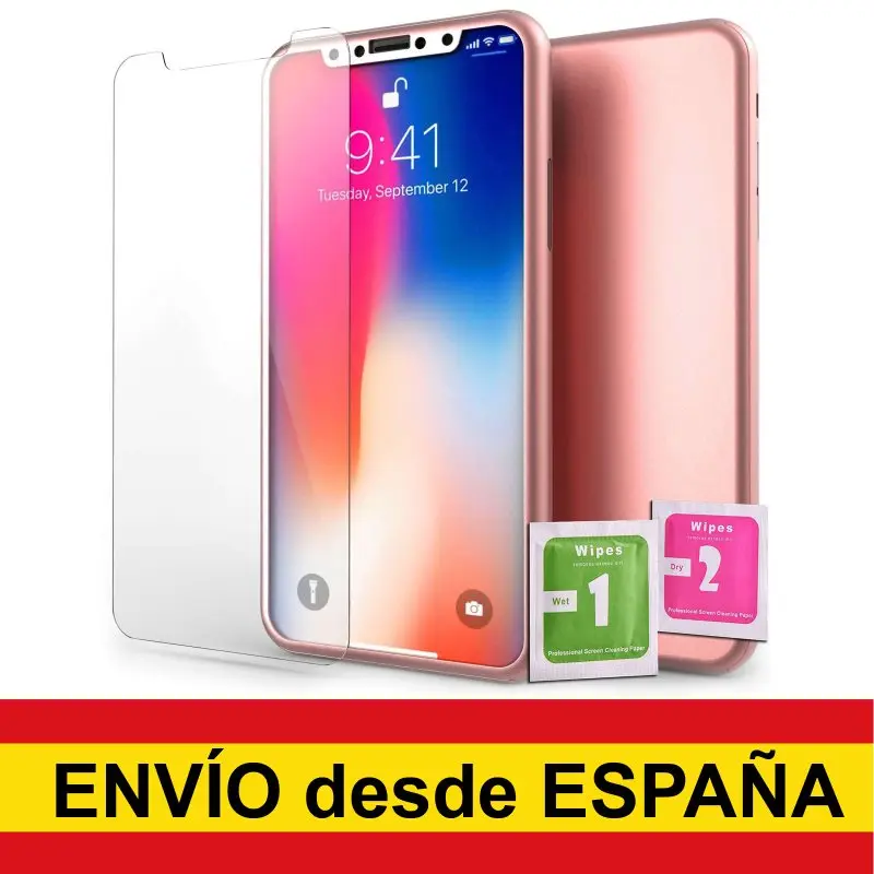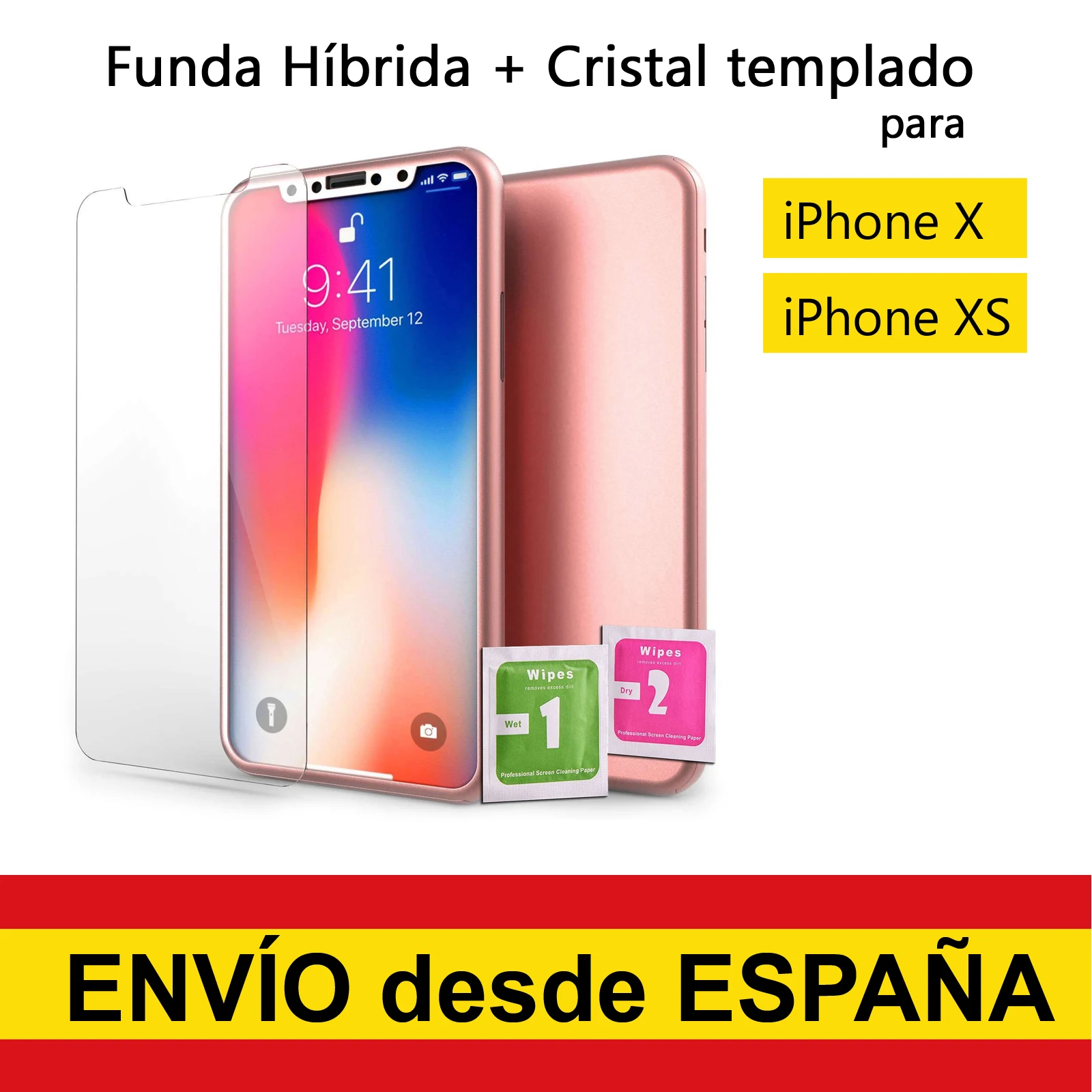Comprar Funda 360° Hibrida para IPHONE X / XS ROSA ORO + Cristal Templado Carcasa Delantera y Trasera