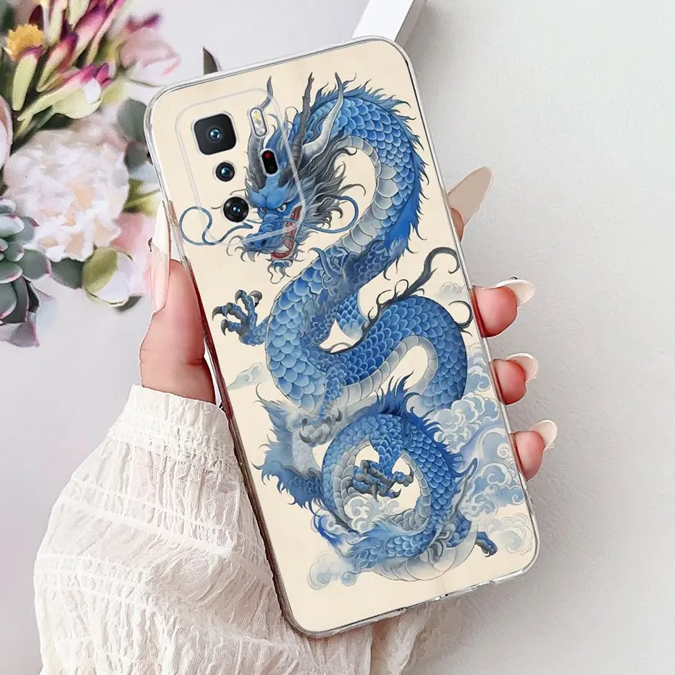 Funda de 6.6" para Xiaomi Redmi Note 10 Pro 5G, funda de lujo de mármol con dibujos animados de dragón, fundas de teléfono de silicona suave para Poco X3 GT 5G, carcasa