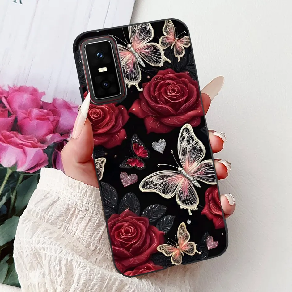 Comprar Funda de 6,78 "para Infinix GT 30 Pro, funda de moda con mariposa, flor, Luna, parachoques de silicona negro suave para Infinix GT 30Pro, fundas de teléfono