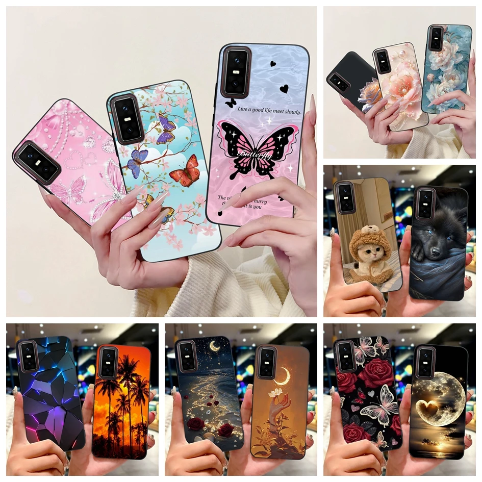 Funda para Infinix GT 30 Pro, funda a la moda con forma de mariposa y flor y Luna, parachoques de silicona suave y negro para fundas de teléfono Infinix GT 30Pro