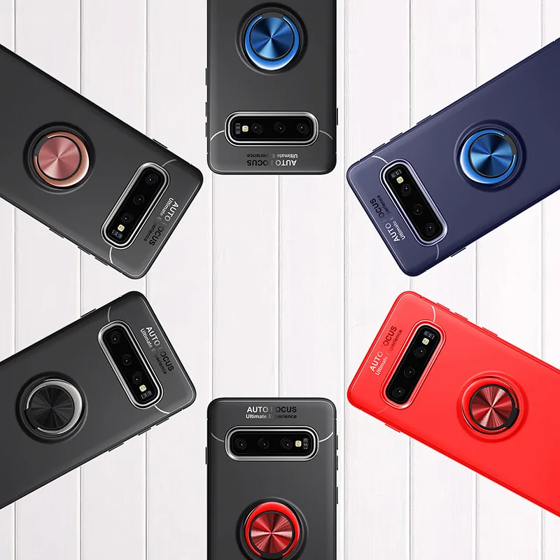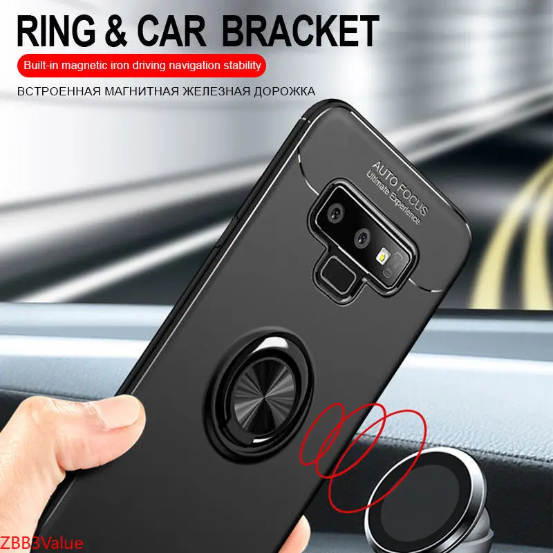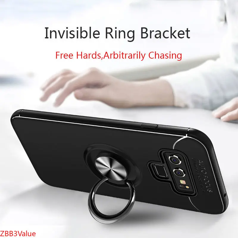 Funda a prueba de golpes con anillo de soporte de lujo para Samsung Galaxy S8 S9 PLus, funda completa para Samsung Note 8 9, fundas de silicona suave con soporte de TPU