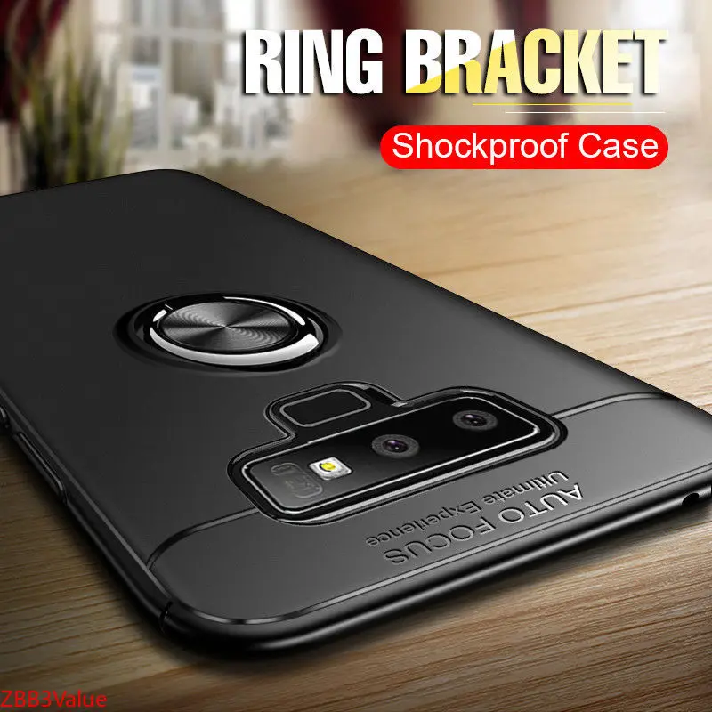 Comprar Funda a prueba de golpes con anillo de soporte de lujo para Samsung Galaxy S8 S9 PLus, funda completa para Samsung Note 8 9, fundas de silicona suave con soporte de TPU
