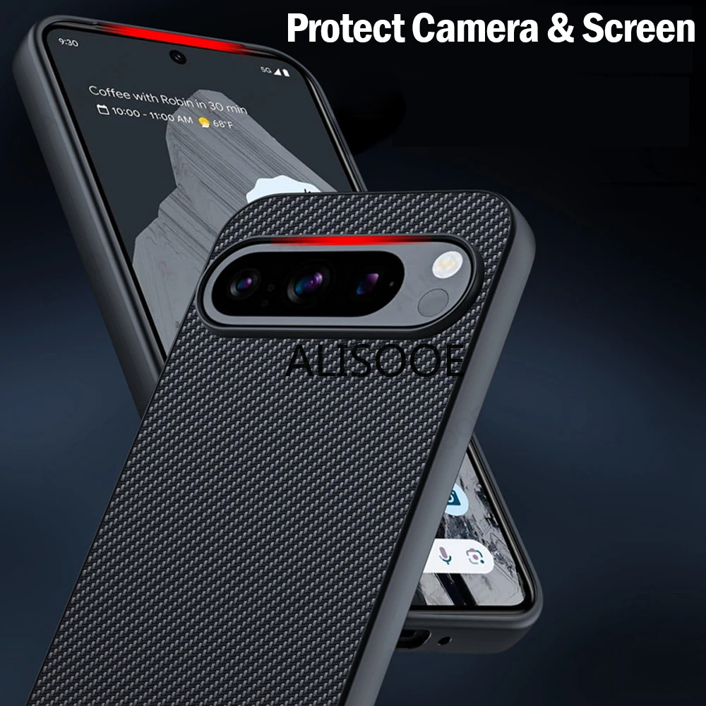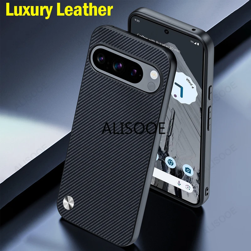 Comprar Funda a prueba de golpes para Google Pixel 9 Pro XL, Funda de lujo con textura de fibra, Capa protectora de cuero PU para Google Pixel 9 Pro