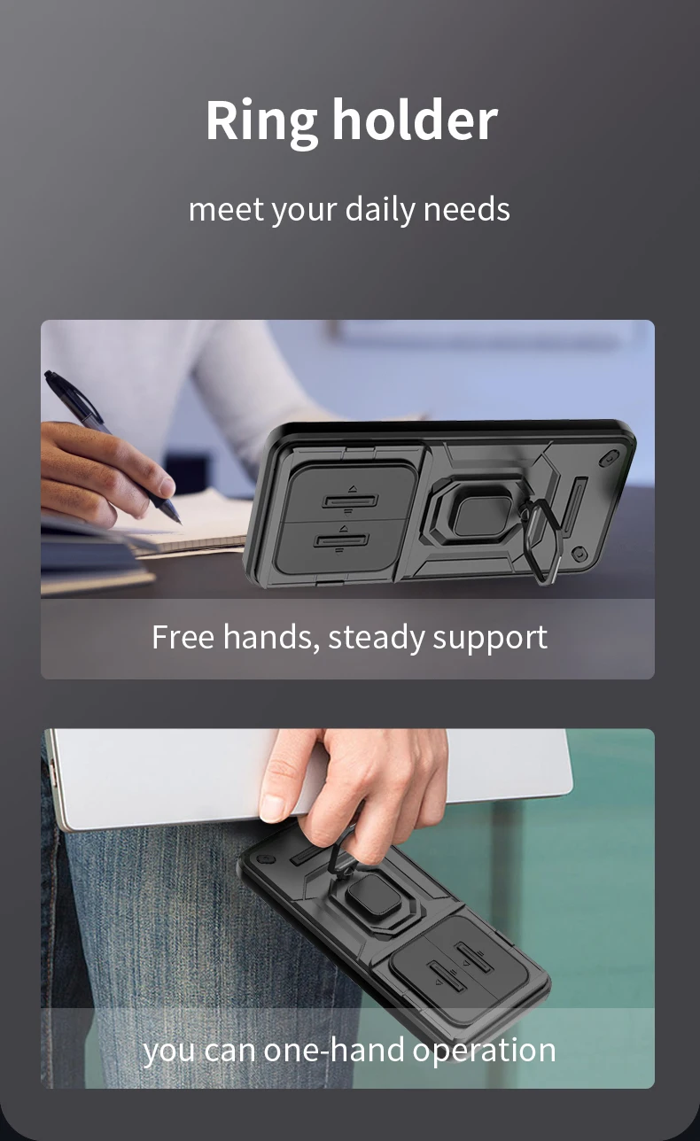 ●【Diseño de cubierta de cámara deslizante inteligente】El bisel elevado es de 3,0 mm, más alto que la lente elevada, atascada en la ranura y se desliza de manera flexible.
