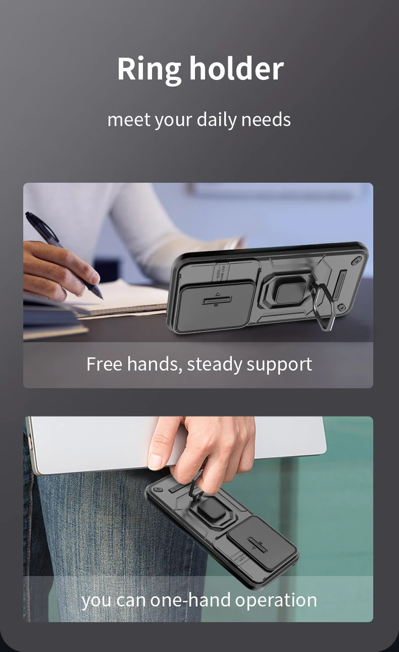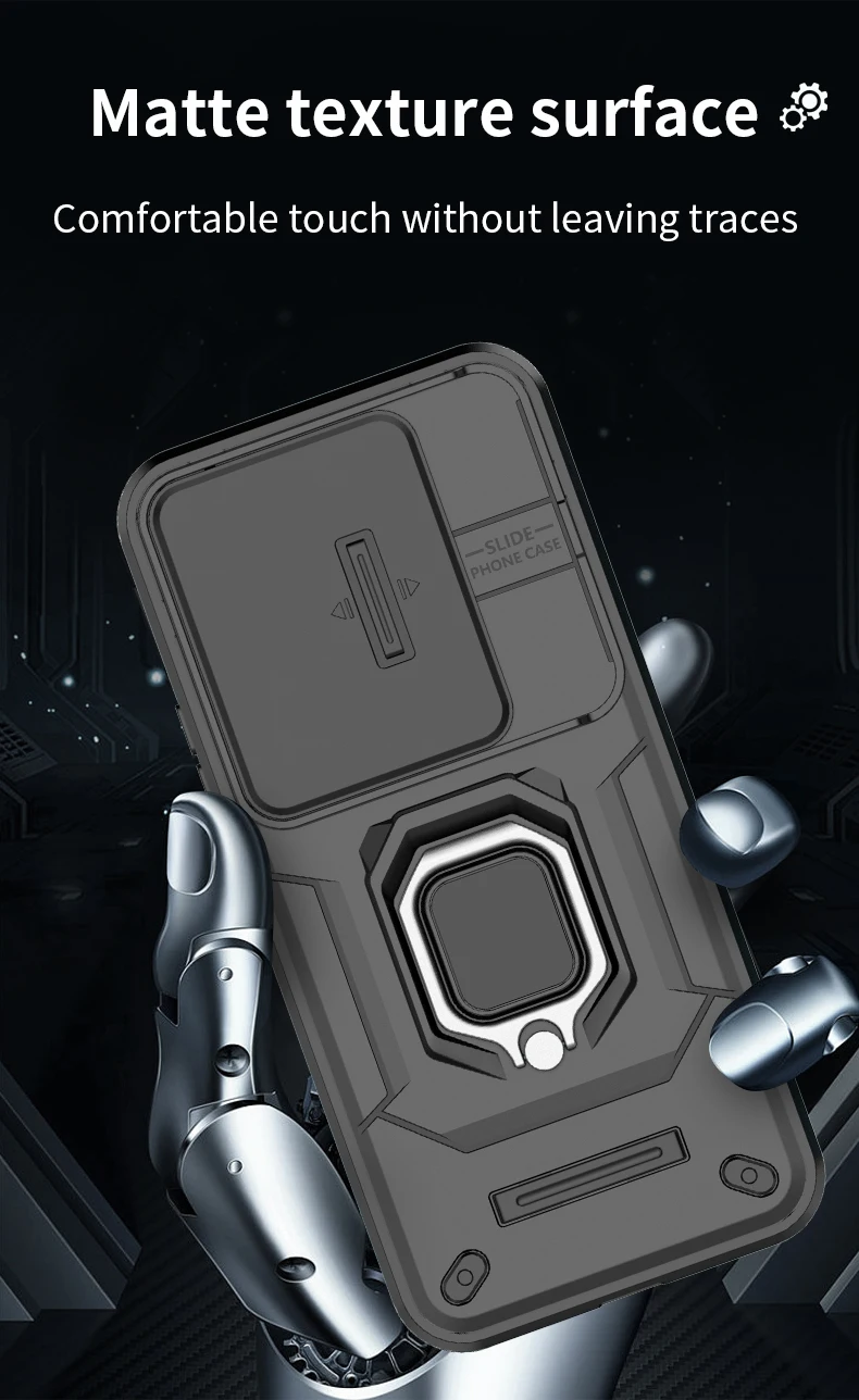 ● 【Diseño de cubierta de cámara deslizante inteligente】 El bisel elevado es de 3,0mm, más alto que la lente elevada, pegado en la ranura, deslizándose de manera flexible.