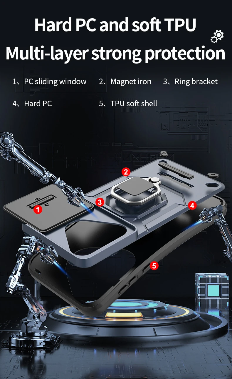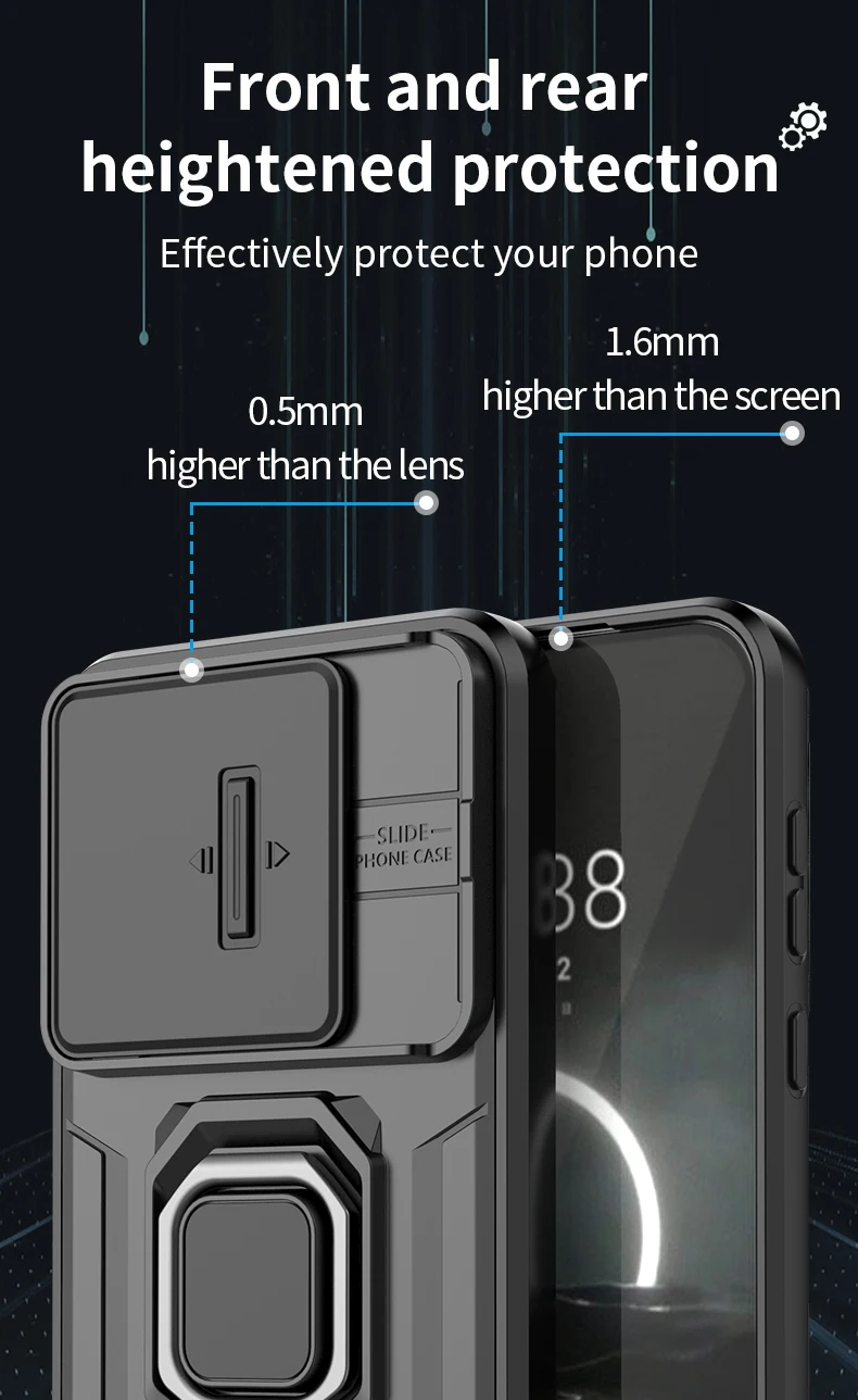 ● 【Diseño de cubierta de cámara deslizante inteligente】 El bisel elevado es de 3,0mm, más alto que la lente elevada, pegado en la ranura, deslizándose de manera flexible.