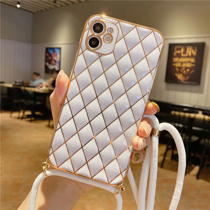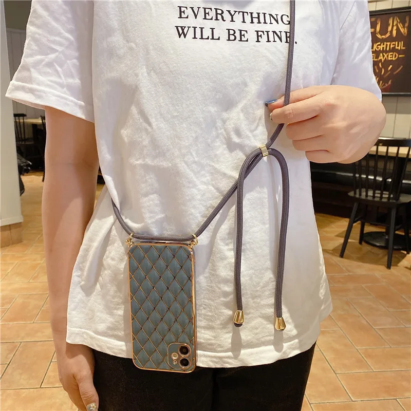 Comprar Funda a prueba de golpes para iPhone 14, 13, 11, 12, Xs, Max, XR, 8, 7 Plus, Pro, SE, silicona suave con correa trasera para teléfono