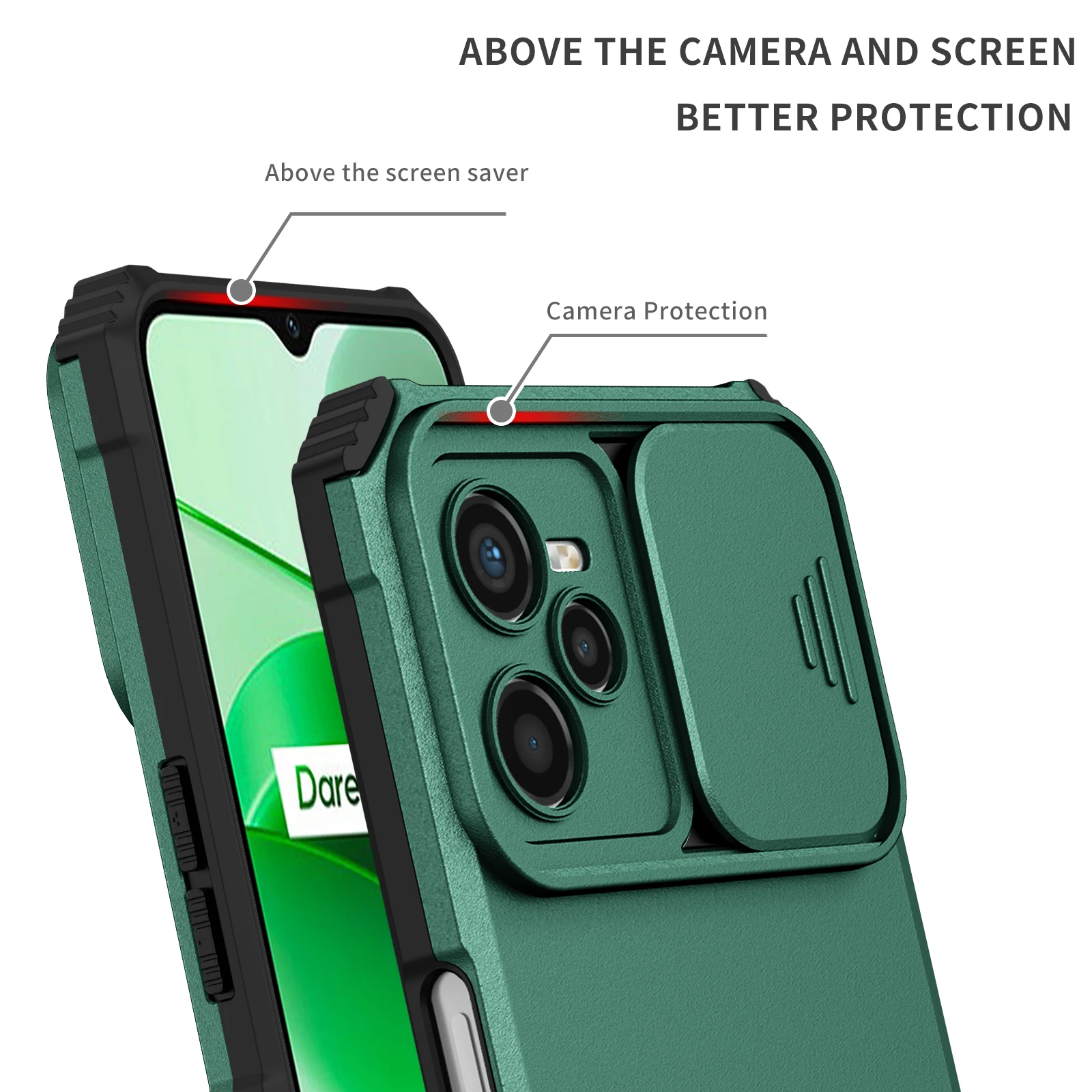 Comprar Funda a prueba de golpes para Realme C35 C31 C25 C21Y C20 C17 C15 lente de cámara deslizante soporte de protección cubierta de teléfono para Realme 9i 7i 5i