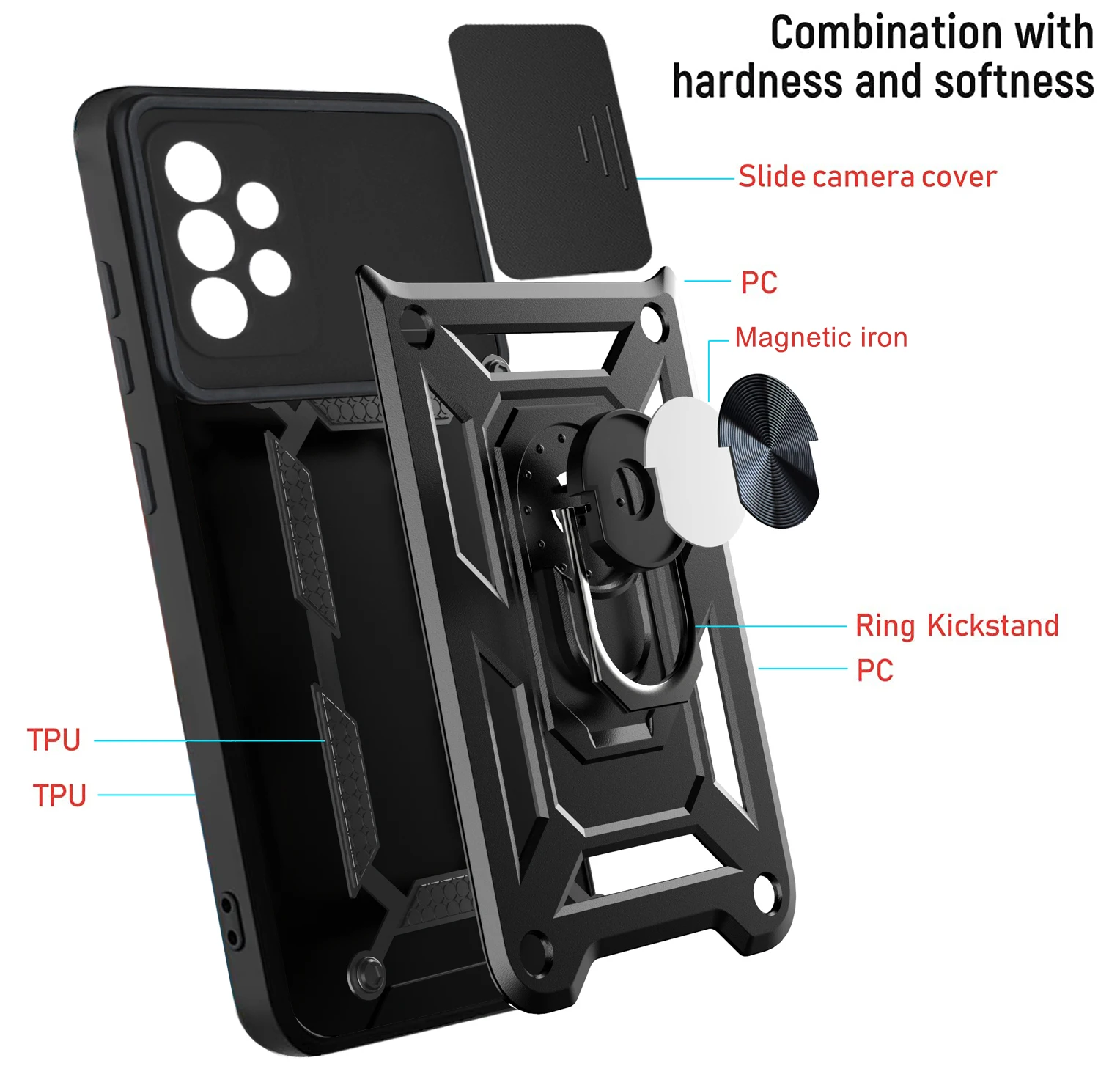 Funda protectora a prueba de golpes para Samsung Galaxy A52 A 52 5G, lente de cámara de teléfono, soporte magnético para coche, funda con anillo